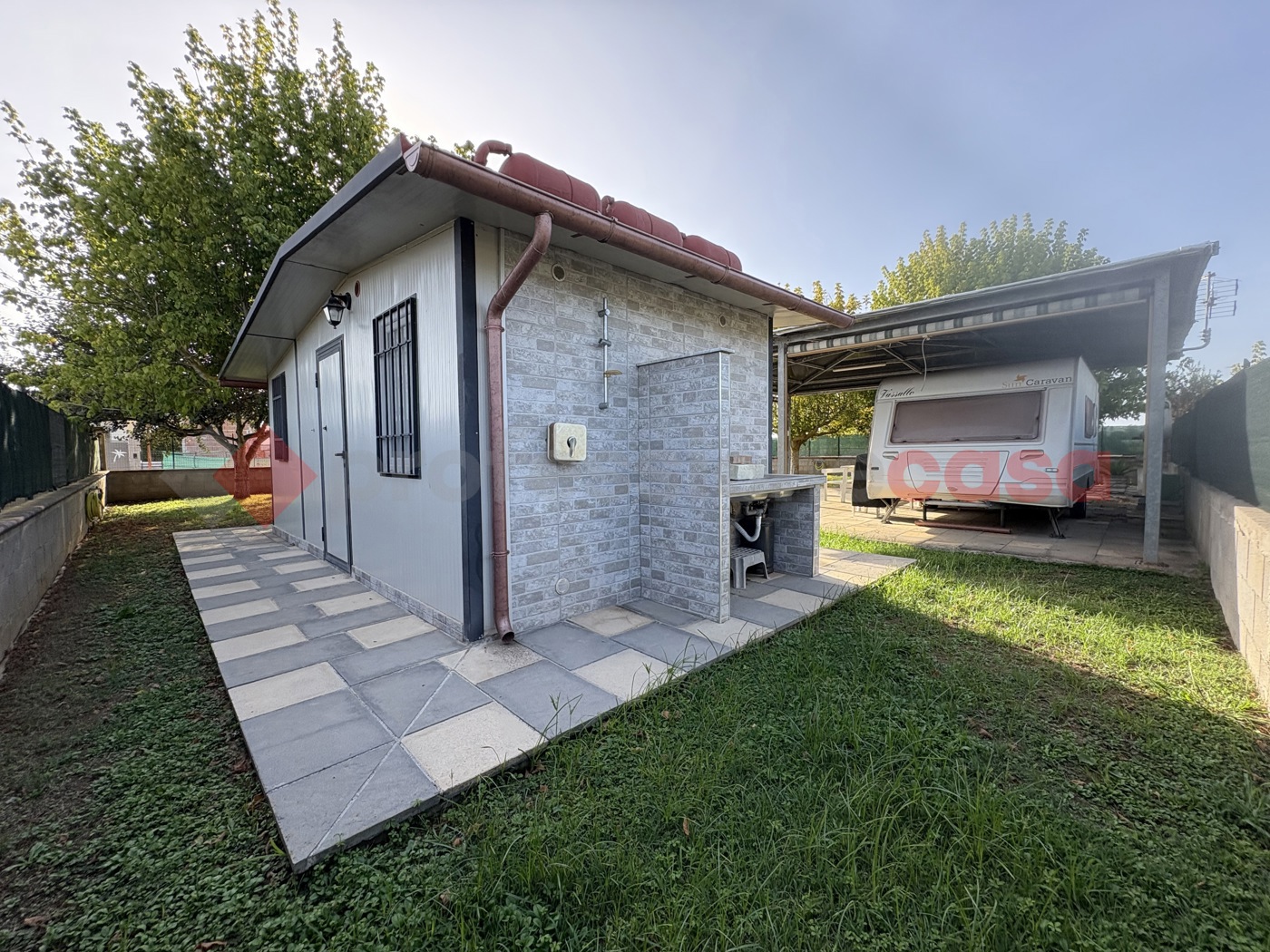All'interno il prefabbricato composto da una cucina, un bagno con doccia, una stanza attualmente adibita a ripostiglio.