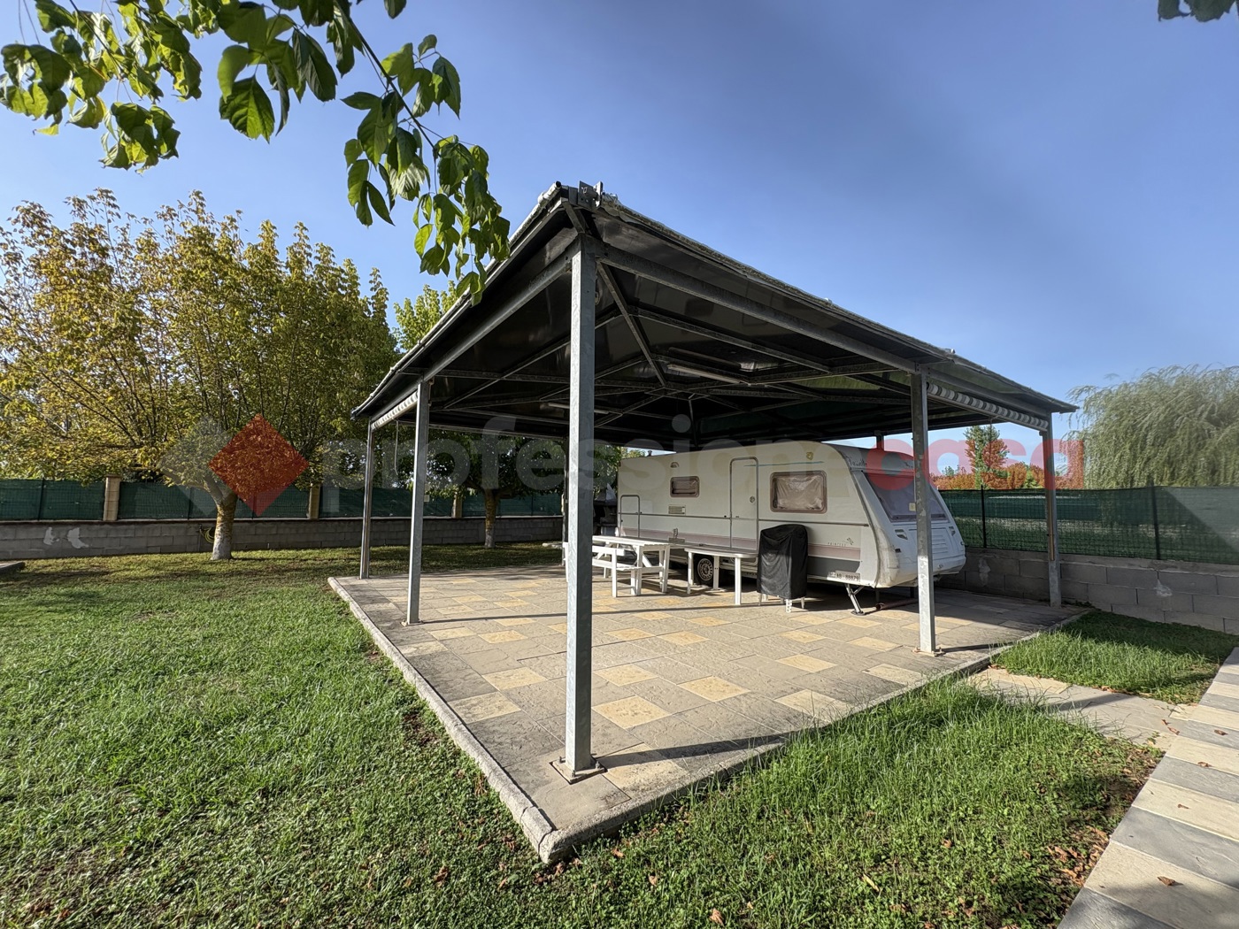 Accediamo all'ampio giardino tramite il cancello carrabile dove troviamo lo spazio per parcheggiare pi di un autovettura.