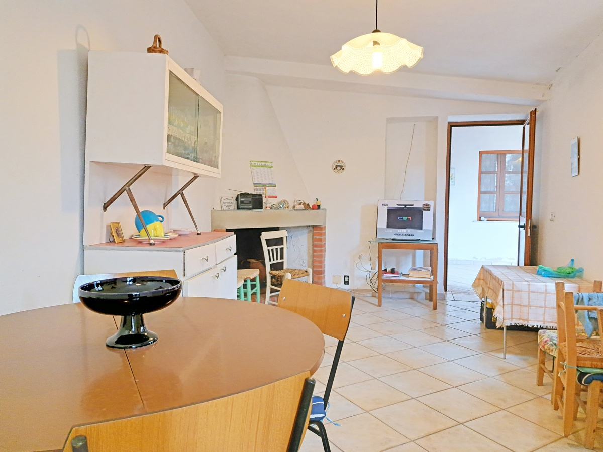 Cucina con camino, soggiorno, camera, bagno, ripostiglio e loggiato al piano terra e due locali al piano primo.