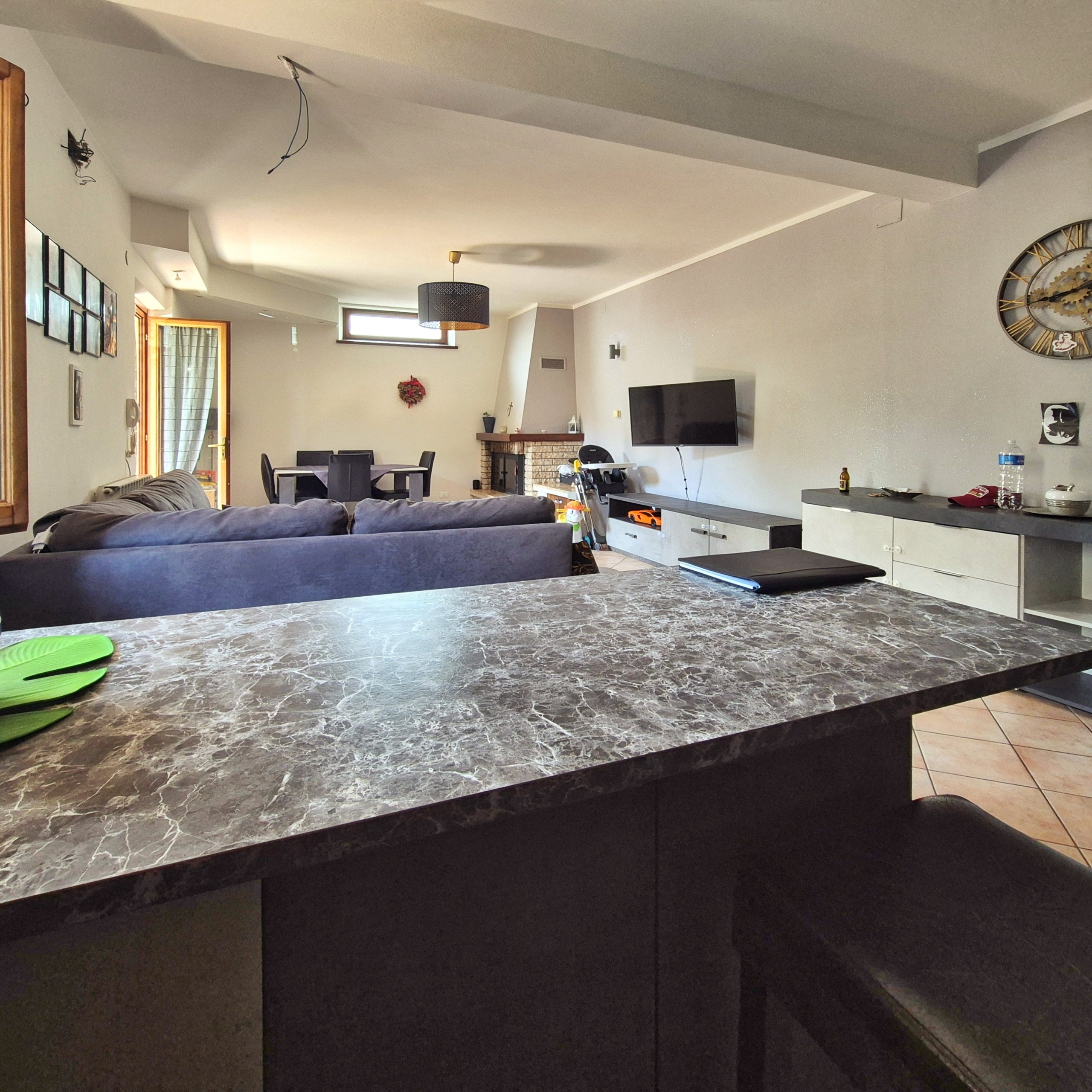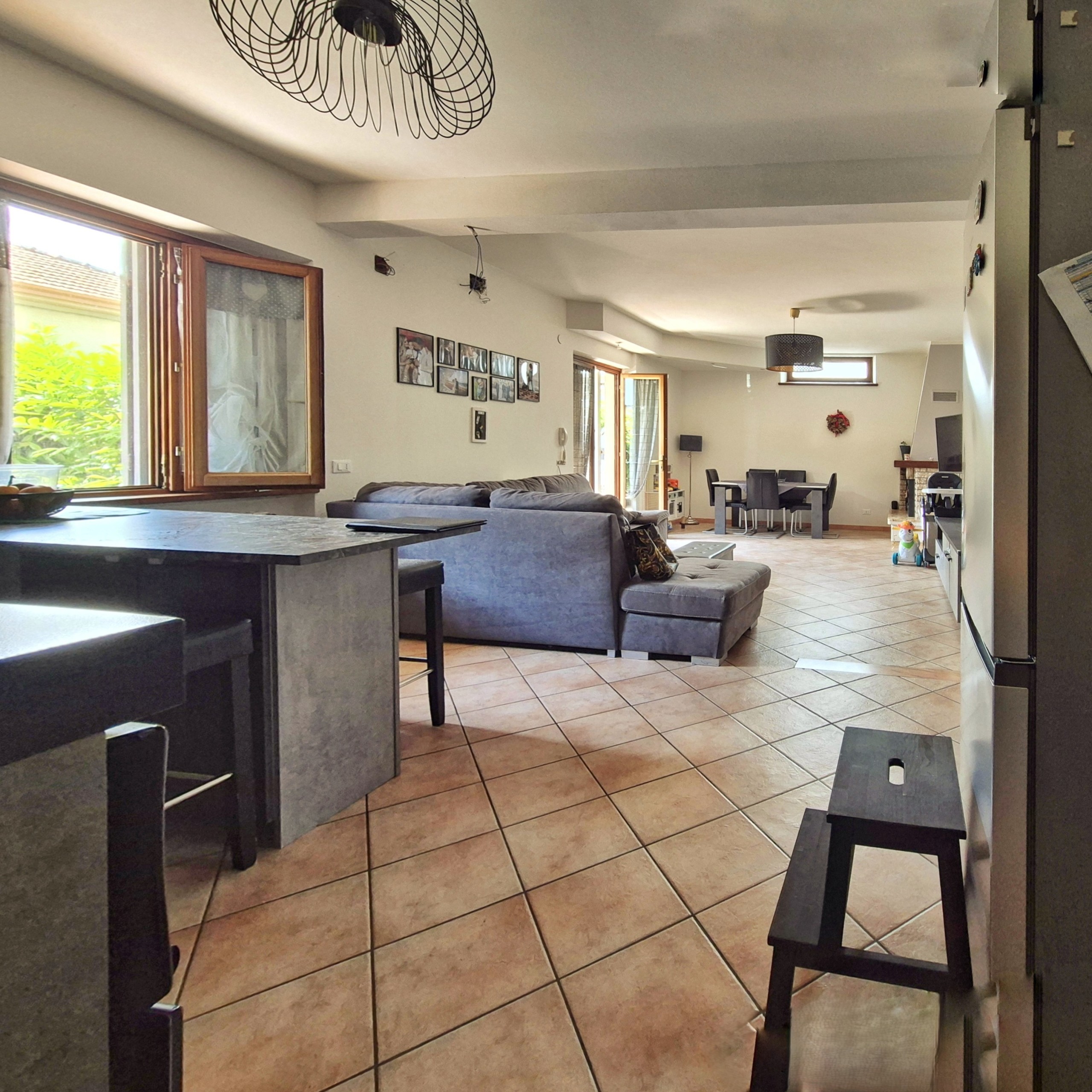 Vicinissimo al centro di Santo Stefano, in zona defilata dal traffico, proponiamo bella porzione di bifamigliare ristrutturata da poco così composta: entrata nel grande soggiorno open space con camino, moderna cucina a vista con piccola dispensa, disimpegno zona notte dove troviamo bagno cieco con doccia, camera matrimoniale, ripostiglio, cantina e zona lavanderia.