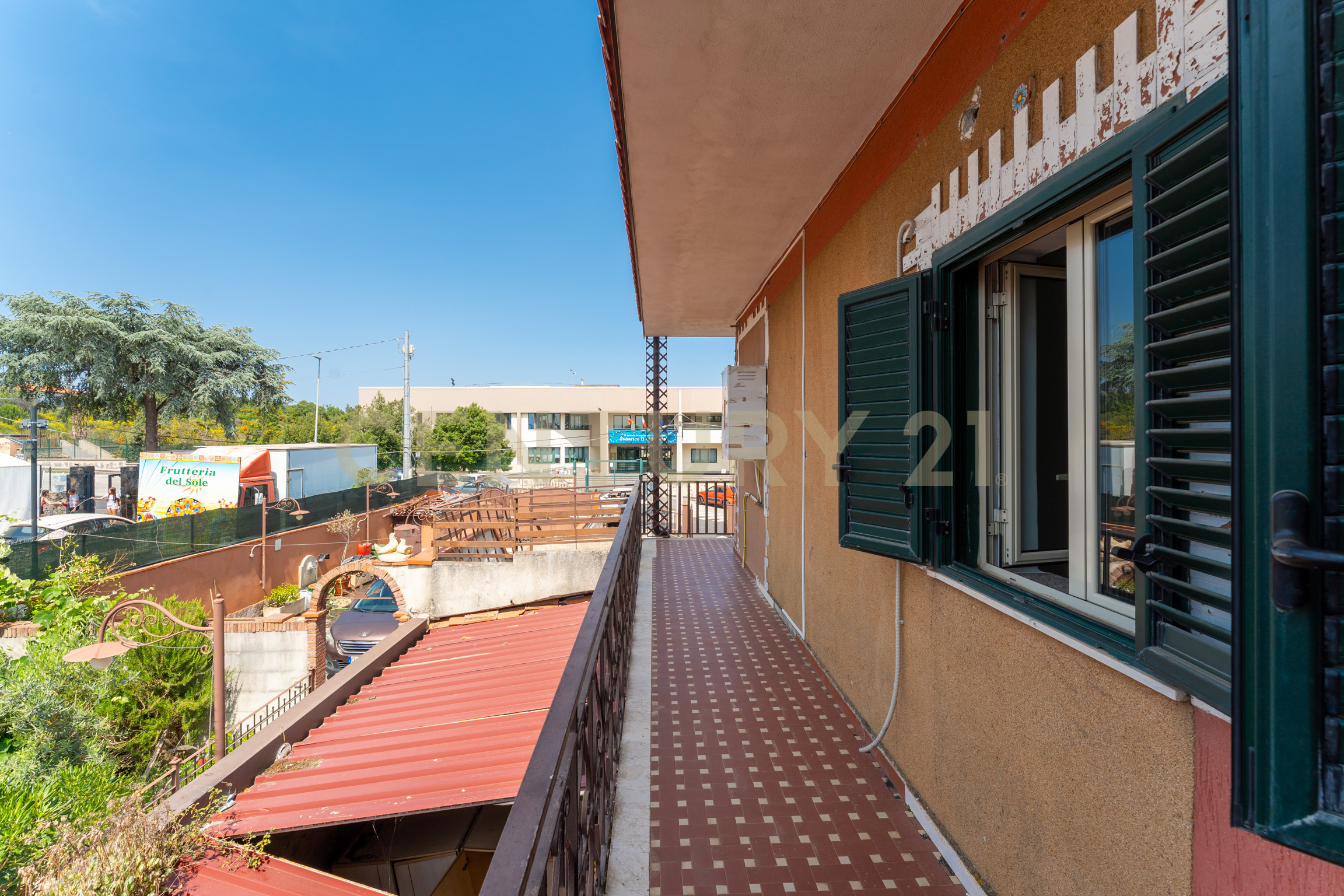 Attraverso una scala esterna si accede a un balcone angolare che abbraccia tre lati della casa, regalando ottima esposizione solare e una piacevole ventilazione naturale.
