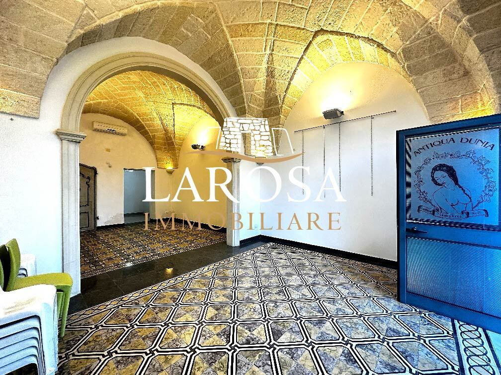 LAROSA IMMOBILIARE PROPONE IN VENDITA splendido locale commerciale a Melendugno (LE), su due livelli con cortile retrostante e area solare di esclusiva proprietà. Limmobile ha una superficie complessiva di circa 109 mq ed è stato completamente ristrutturato, valorizzando le caratteristiche architettoniche tipiche del territorio: volte a stella in pietra a vista al piano terra e volta a botte in pietra a vista nel locale deposito al piano seminterrato.