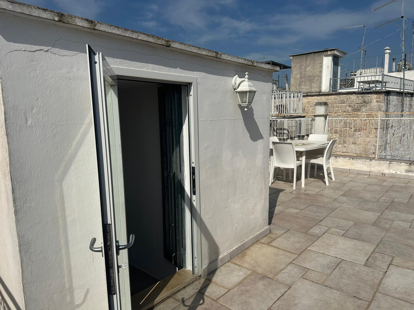 Proseguendo al livello superiore si raggiunge il terrazzo, uno spazio riservato e versatile, ideale per momenti di relax allaperto, colazioni, aperitivi e cene. Da qui si possono godere piacevoli scorci di vista mare e sul centro storico, con la possibilità inoltre di installare un gazebo o una jacuzzi, rendendo questo ambiente ancora più esclusivo.