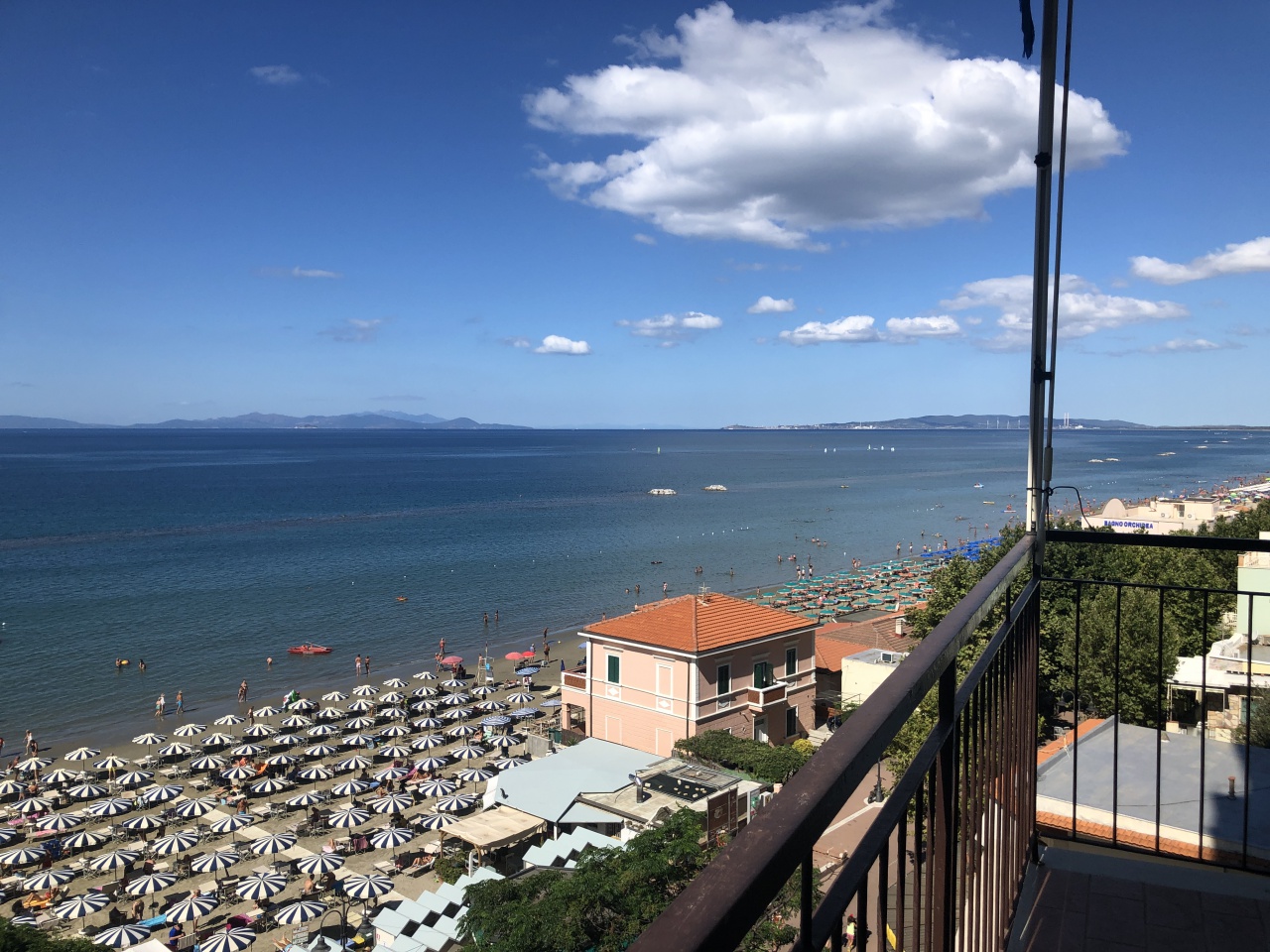 Affitto Luglio e Agosto via Matteotti 93 Zona centro, a pochi passi dal mare appartamento con bellissima vista mare posto al 5 piano con ascensore, circa 80 mq. Soggiorno ampio con divano letto e terrazza fronte mare , una camera matrimoniale, una camerina con due lettini, ogni camera con il proprio terrazzo vista mar ,bagno finestrato con doccia.