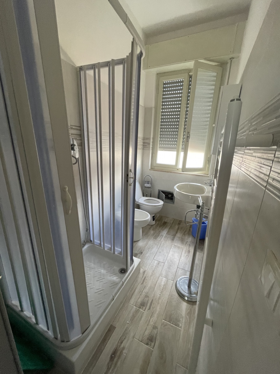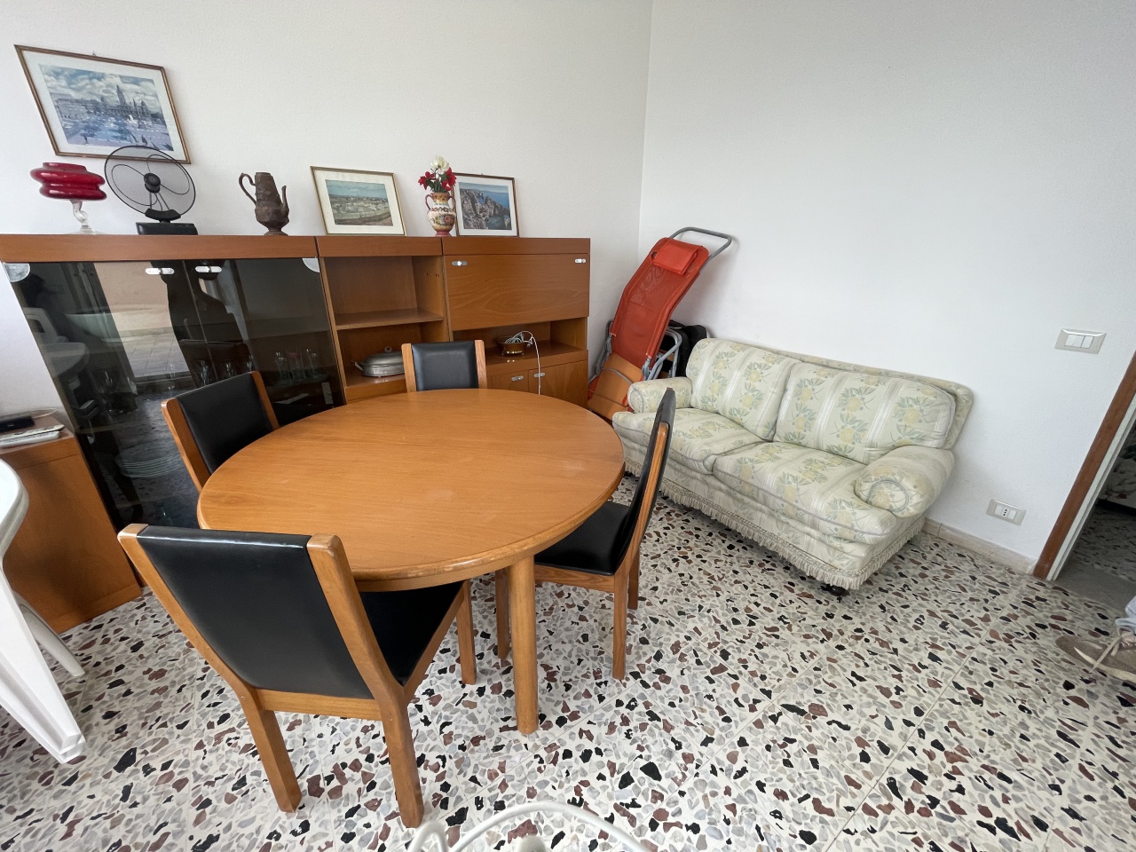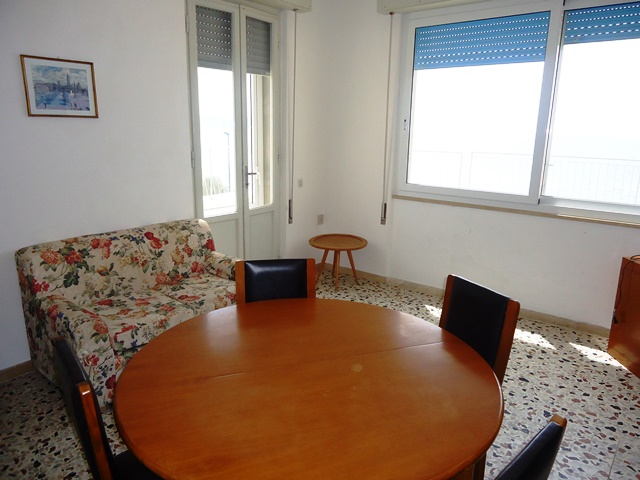 Appartamento al secondo piano senza ascensore, composto da soggiorno con terrazza vista mare, cucina, due camere matrimoniali ognuna con lettino singolo, bagno con doccia.