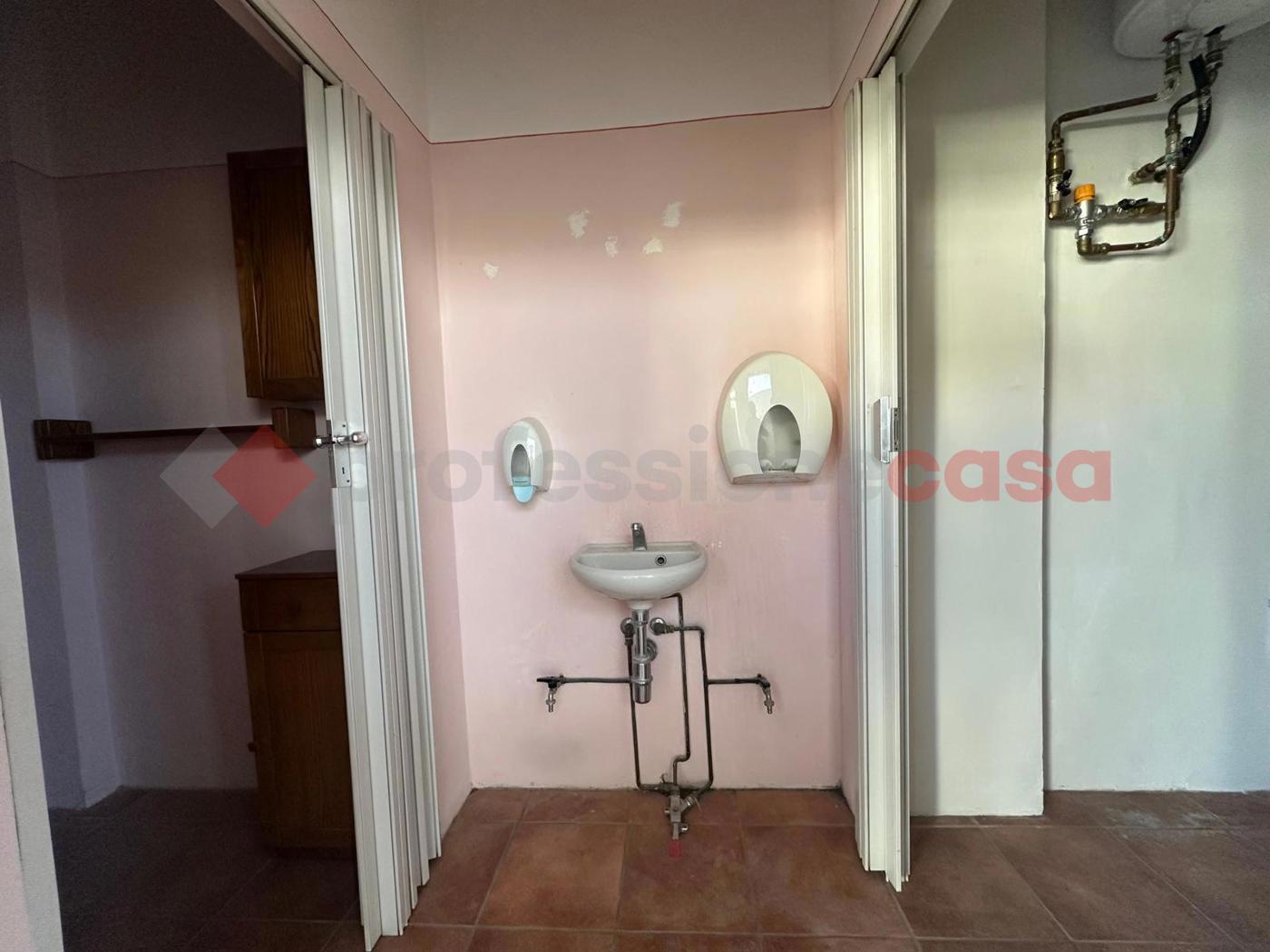 Limmobile composto da un vano principale, un servizio con antibagno e uno spogliatoio, offrendo una distribuzione degli spazi funzionale e adatta a diverse attivit.