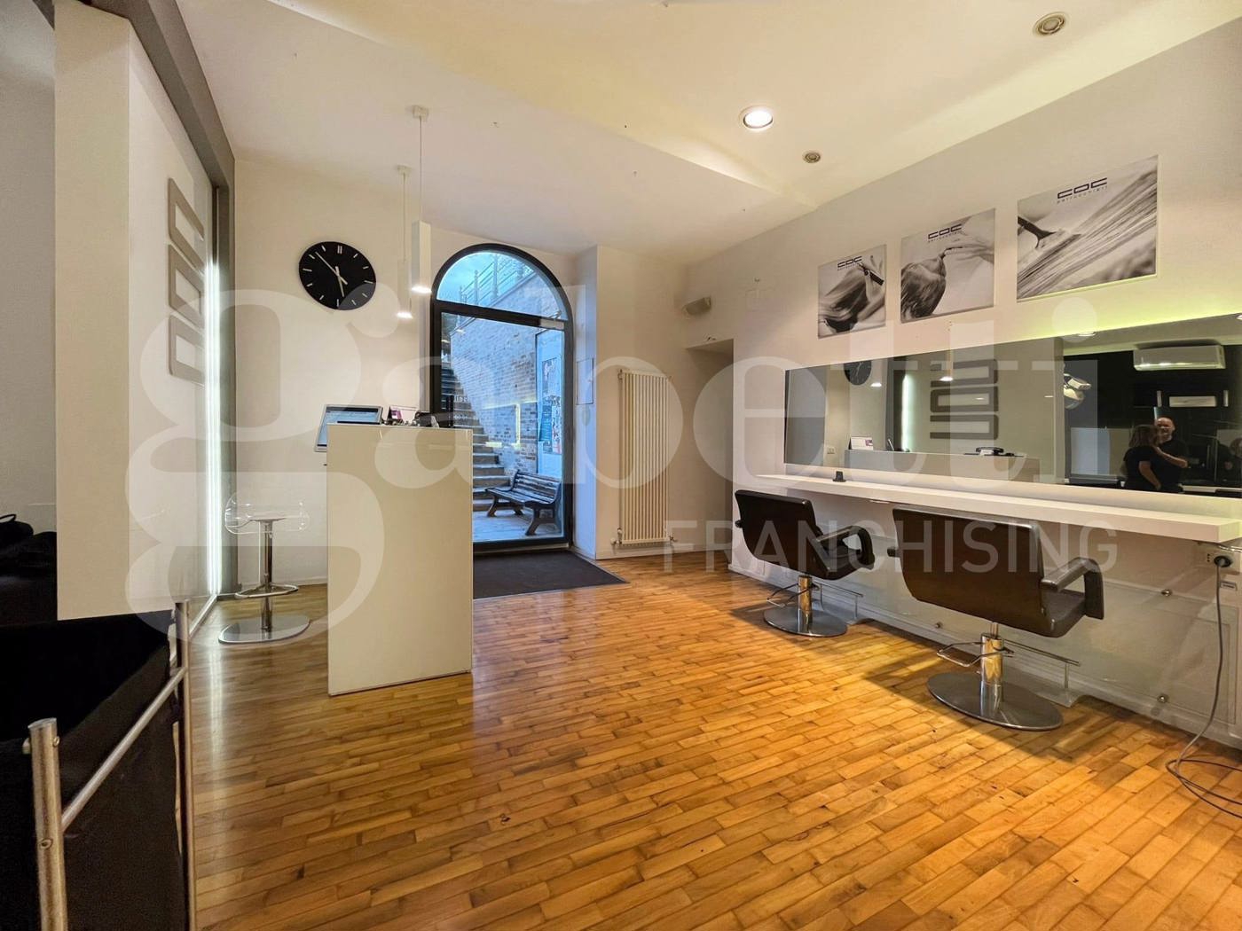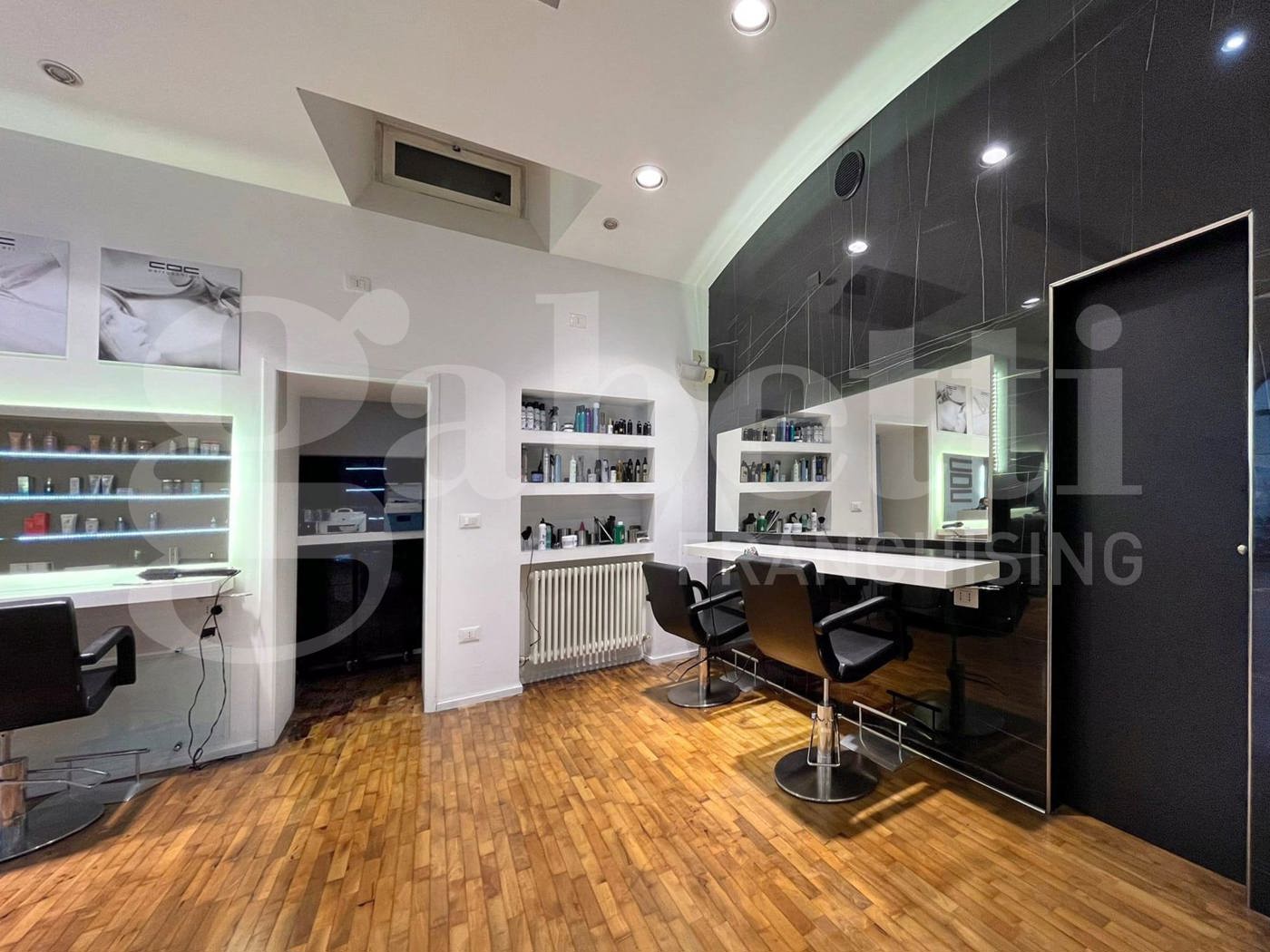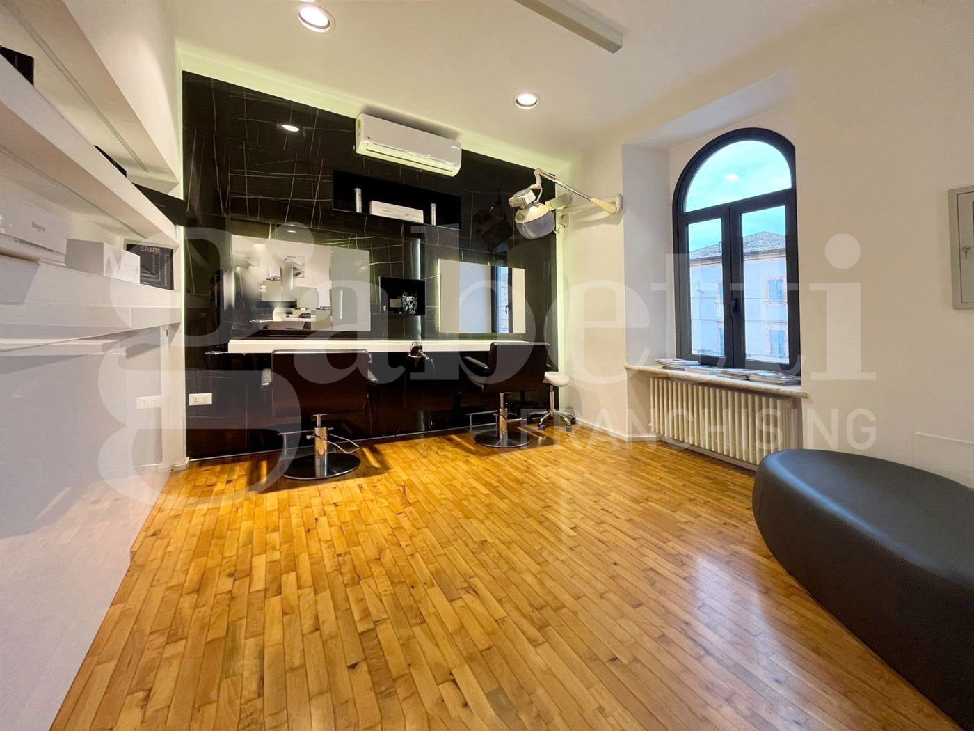 Il locale di circa 80 mq a destinazione laboratorio artigianale, completamente ristrutturato nel 2023, organizzato in un ingresso su ampio salone suddiviso in due ambienti da un divisorio, una seconda stanza con finestra, un bagno con antibagno, e due ripostigli.