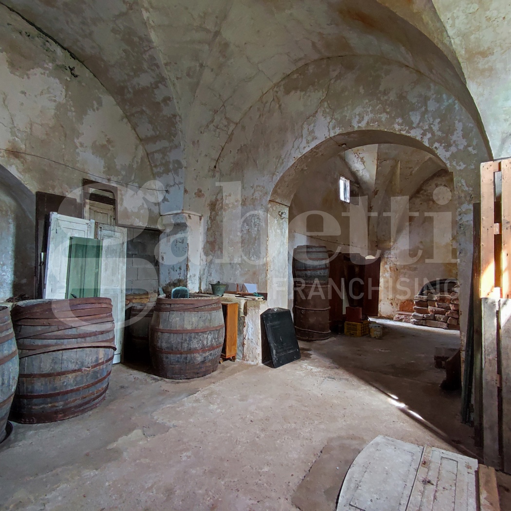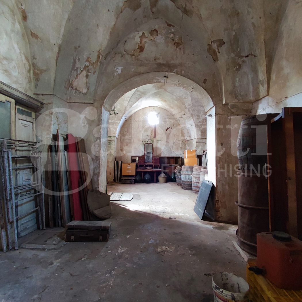 Il corpo principale, originariamente una cantina per la lavorazione dell'uva e la produzione di vino, si compone di due ampi vani a volta a stella del tipo 'spigolo', senza partizione muraria divisoria tra i due, aventi un'altezza tale da permettere la realizzazione di soppalchi, e dotati di antiche cisterne interrate dove veniva conservato il vino. Un piccolo vano 'a stella' con un antico camino, un vano scala ed un vano sul lastrico solare completano la propriet, corredata anche di un giardino di 20,00 mq circa.