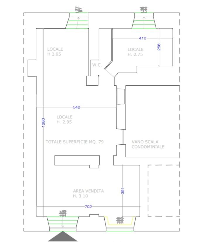 La superficie risulta tutta facilmente utilizzabile e situato al piano strada con doppio accesso altezza H 3.10 in ingresso e H 2.95 retro attualmente la categoria catastale è C/3 Laboratorio.