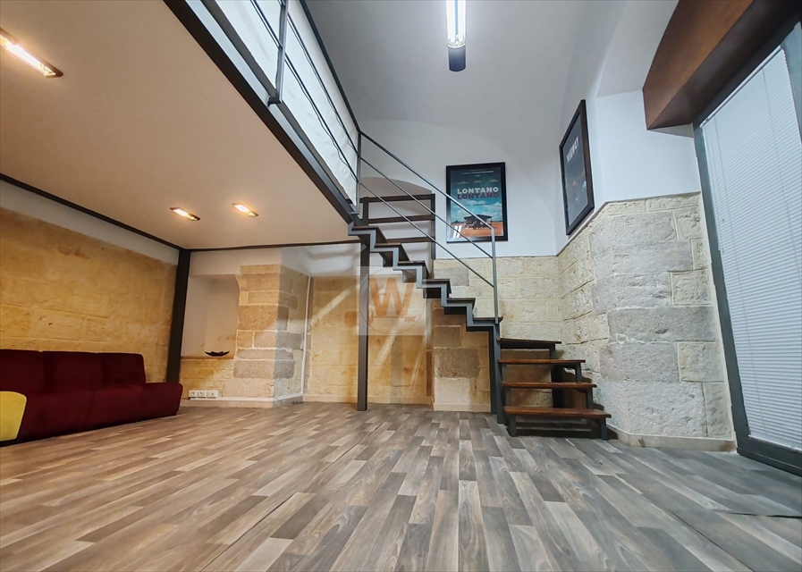 Lingresso si apre su un primo vano soppalcato, ideale come area accoglienza o spazio operativo aggiuntivo.