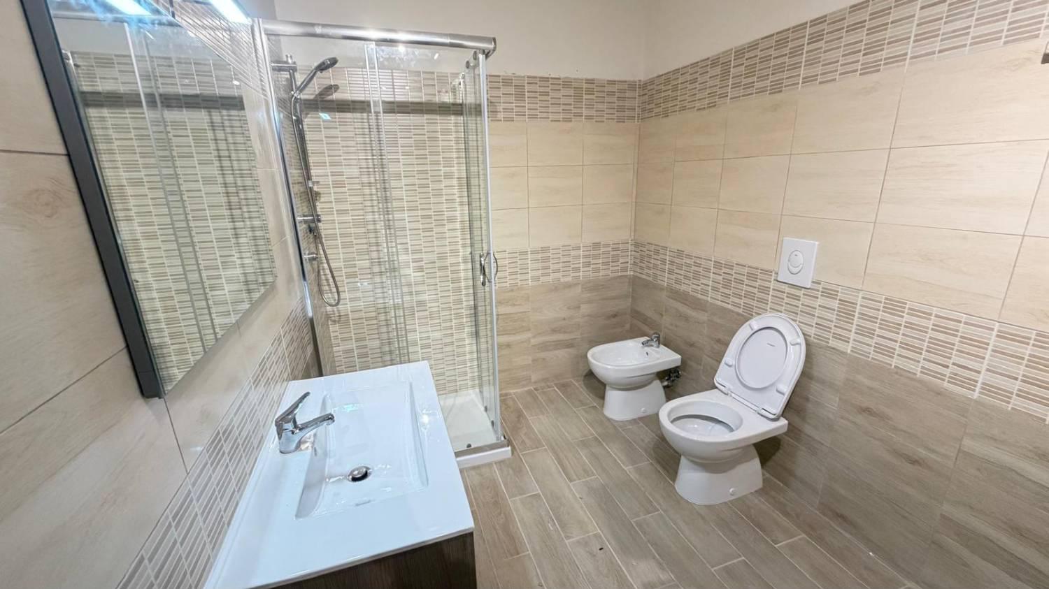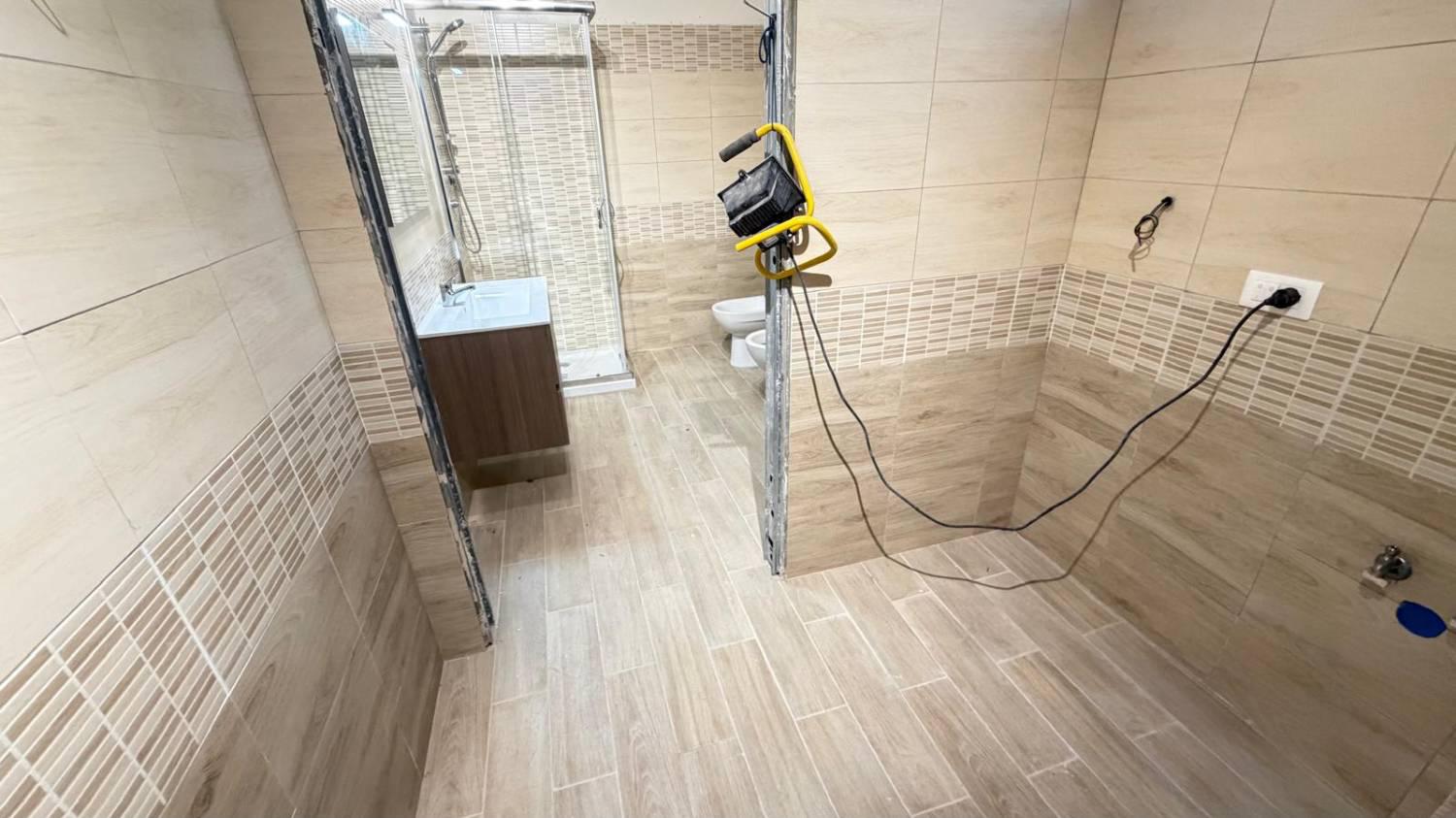 La dotazione impiantistica completa e conforme alle vigenti normative igienico-sanitarie, includendo un blocco servizi con bagno e relativo antibagno a norma.