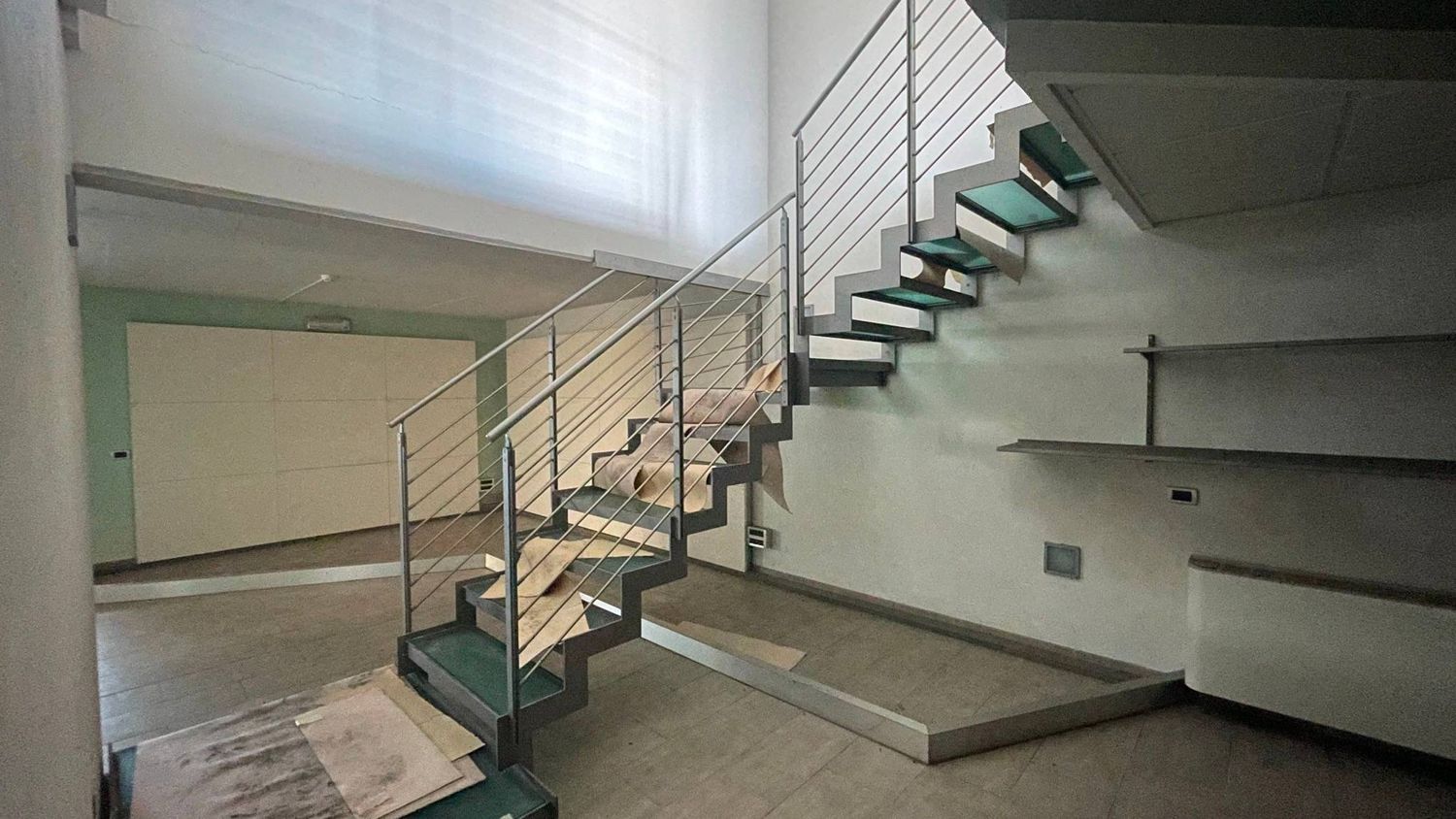 Scala interna che conduce al seminterrato, dotato di un altro ampio vano ideale per esposizioni o uffici, oltre a bagni, uffici e locali ad uso ripostiglio.