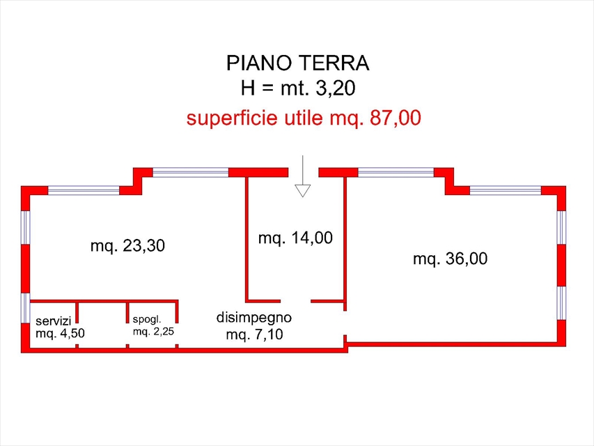 Il locale ha un'altezza di 3,20 metri; E' molto luminoso, in quanto è dotato di 4 ampie porte finestre.