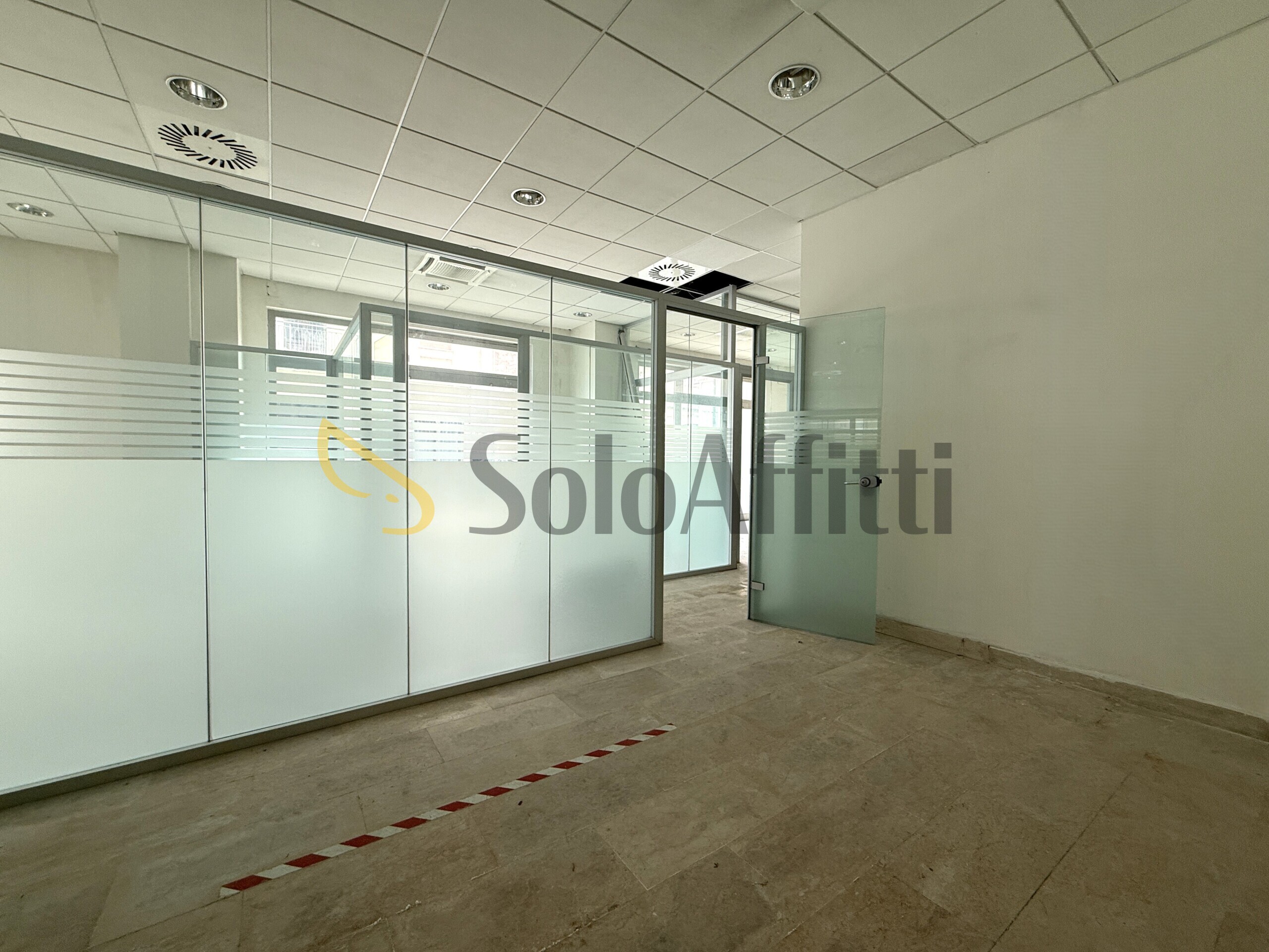 All'interno è composto da un ampio vano open space, doppi servizi, archivio e sei vani realizzate da pareti divisorie in vetro, soluzione che coniuga funzionalità e isolamento acustico.