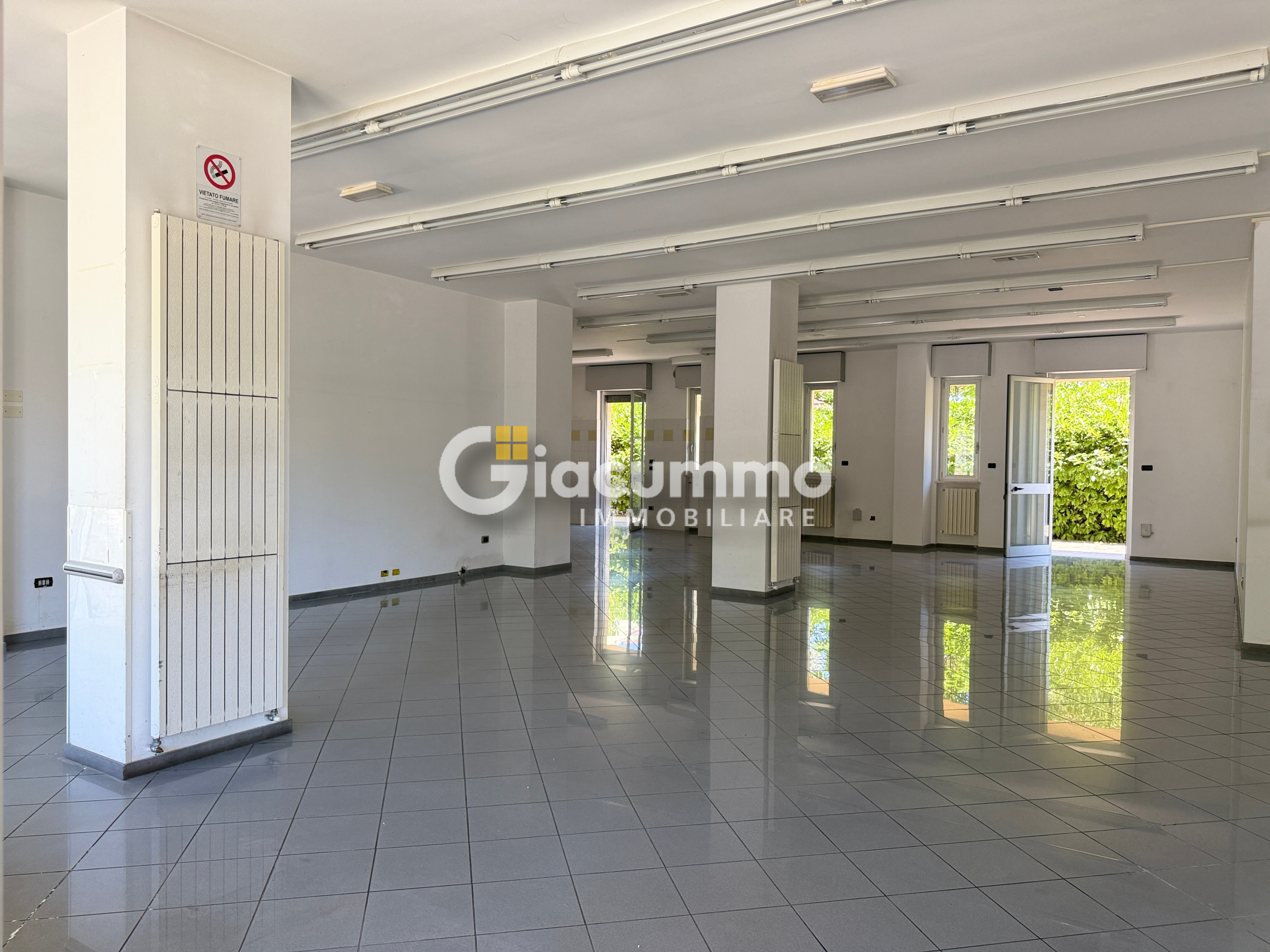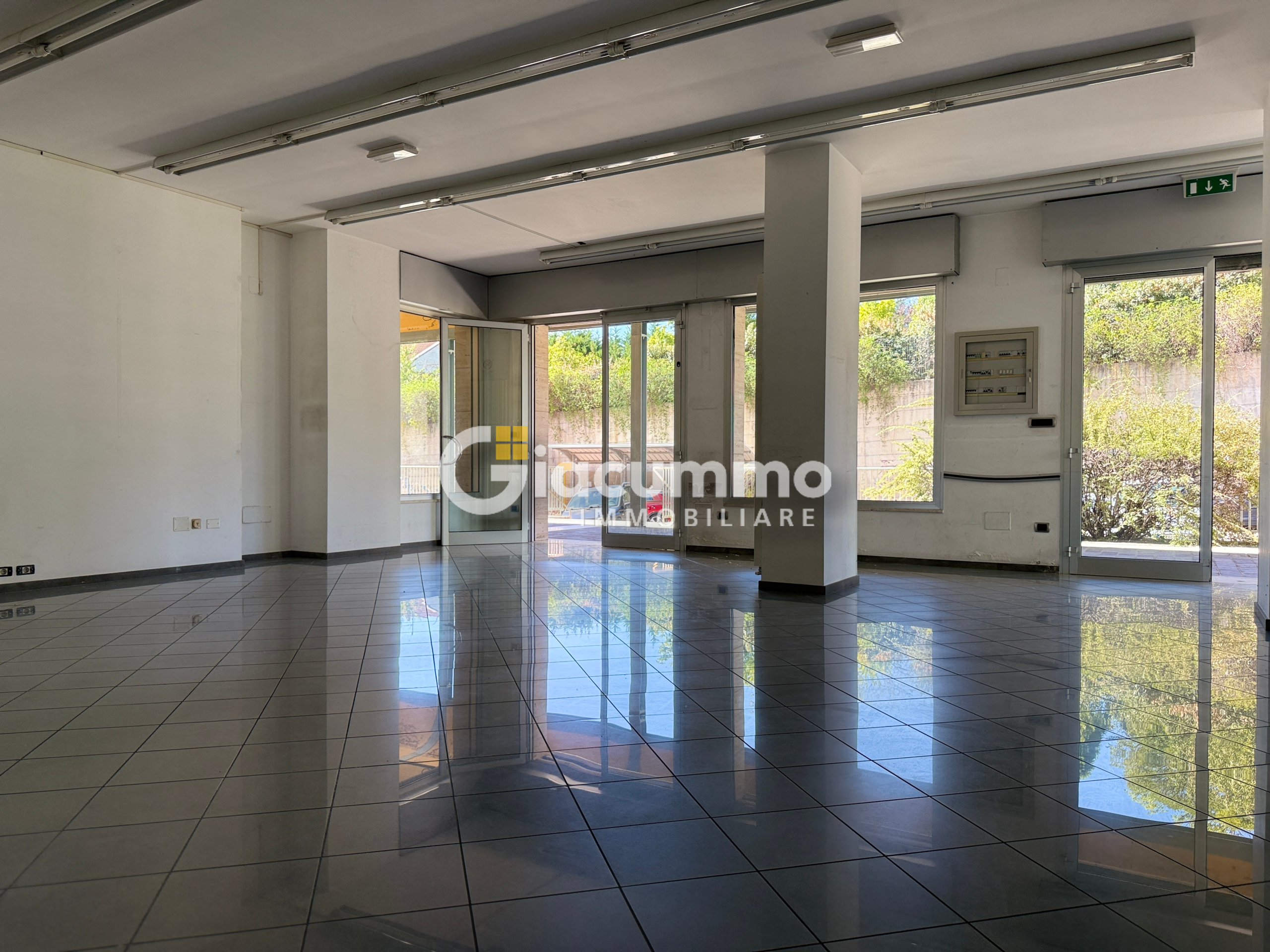 Le ampie vetrine distribuite lungo il perimetro conferiscono grande luminosità e garantiscono un forte impatto espositivo.
