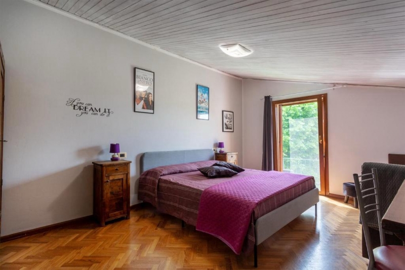 Primo piano Versante Lago: Camera matrimoniale, bagno esterno e ampio disimpegno, ideale come zona relax o studio.