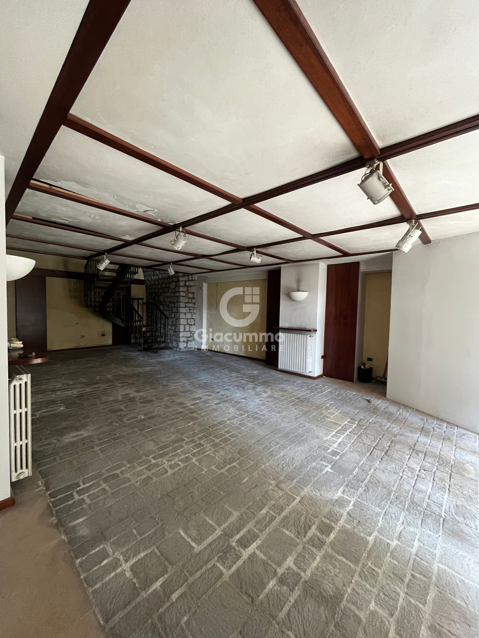 Il piano inferiore presenta una pavimentazione accattivante con dettagli in pietra, creando un'atmosfera affascinante, mentre il piano superiore è arricchito da un bel parquet.