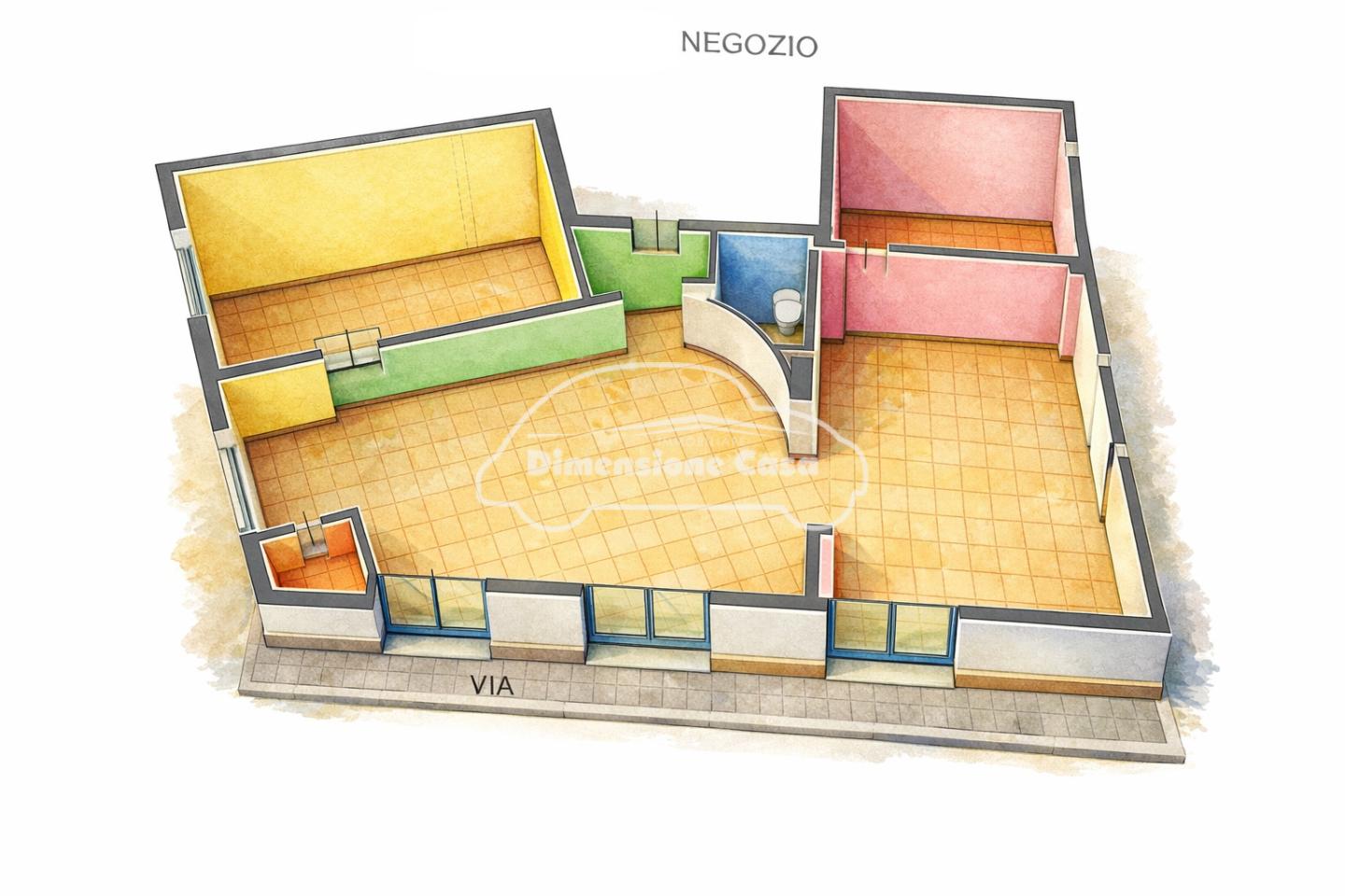 Limmobile si sviluppa su un unico livello al piano terreno rialzato ed è dotato di cinque ampie vetrine fronte strada, che assicurano massima visibilità e luminosità agli ambienti interni, offrendo uneccellente esposizione commerciale.