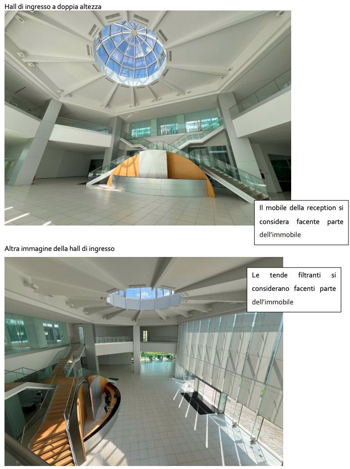 All'interno, spiccano l'atrio maestoso e di design, le sale riunioni e i locali dirigenziali con finiture di pregio.
