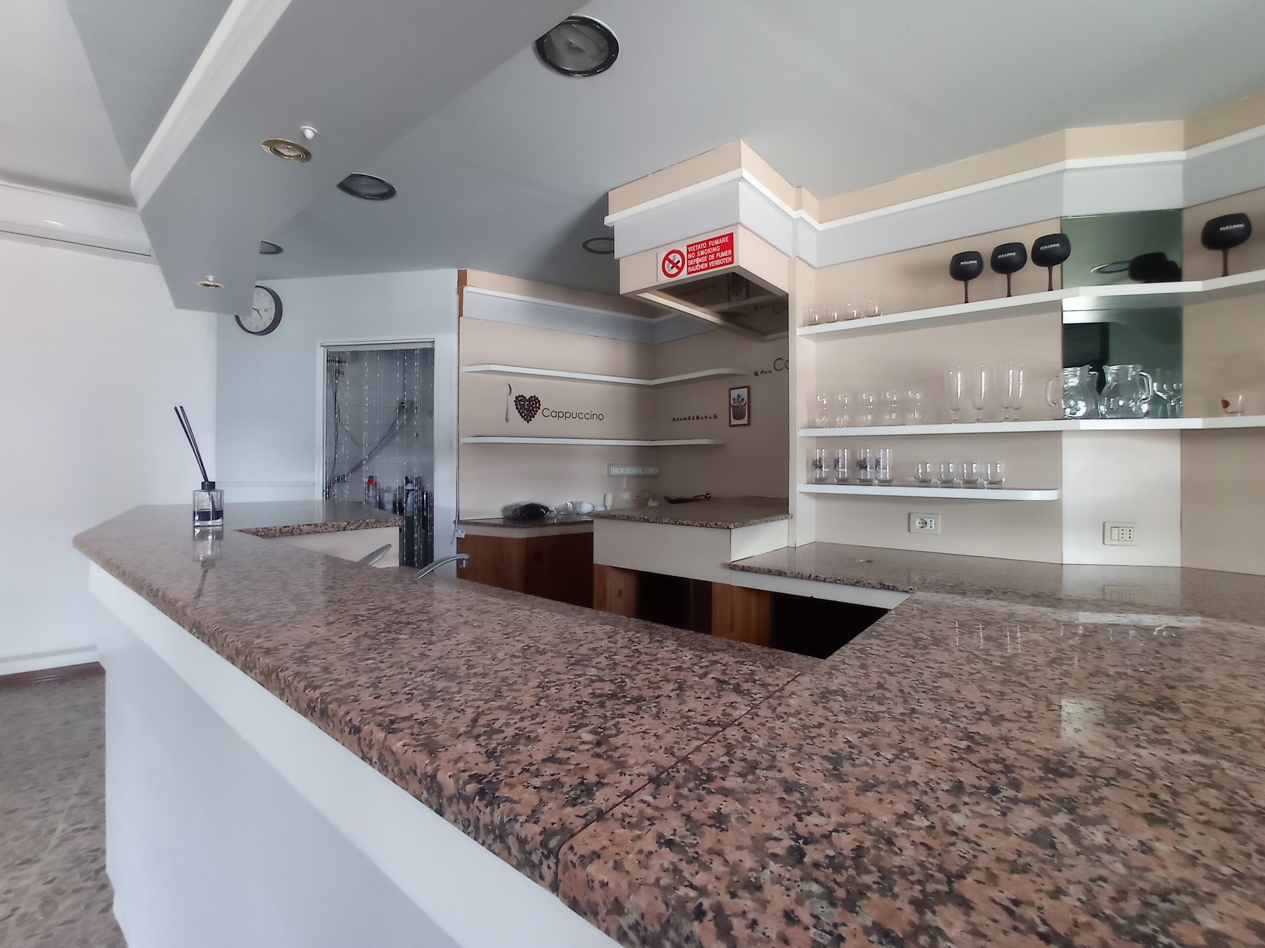 L'immobile, dotato di doppio ingresso con serranda manuale, è strutturato con una prima sala con bancone e vetrina espositiva, angolo cottura e magazzino; una seconda sala con accesso ad antibagno e bagno ed una zona esterna coperta raffrescata e riscaldata.
