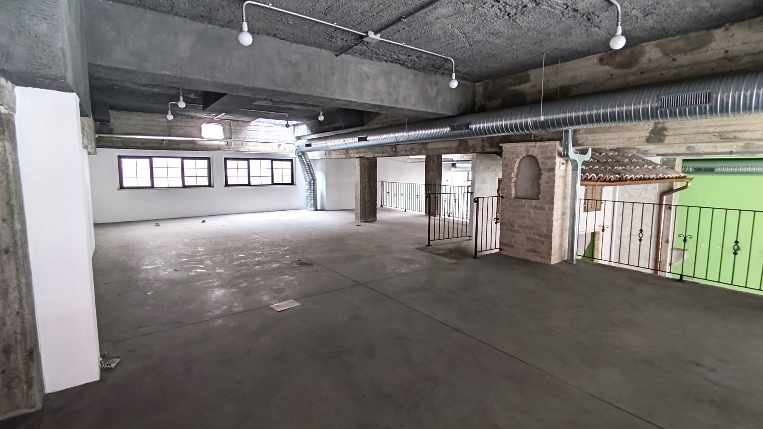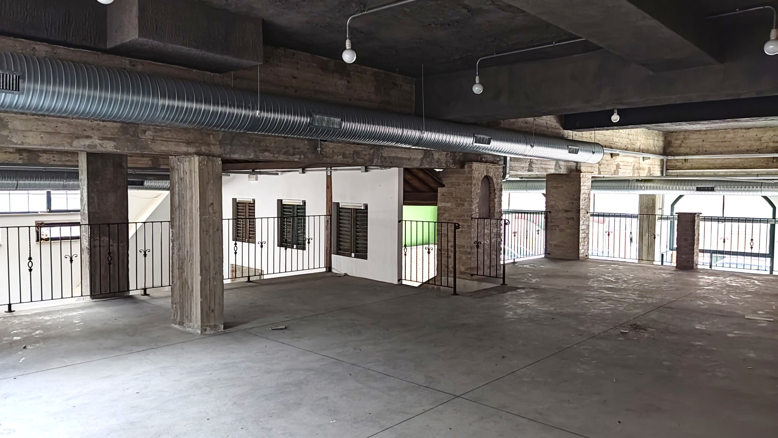 Una scala interna porta ad un ammezzato in struttura metallica e solaio in lamiera grecata sovrastante l'intera superficie dell'autorimessa.