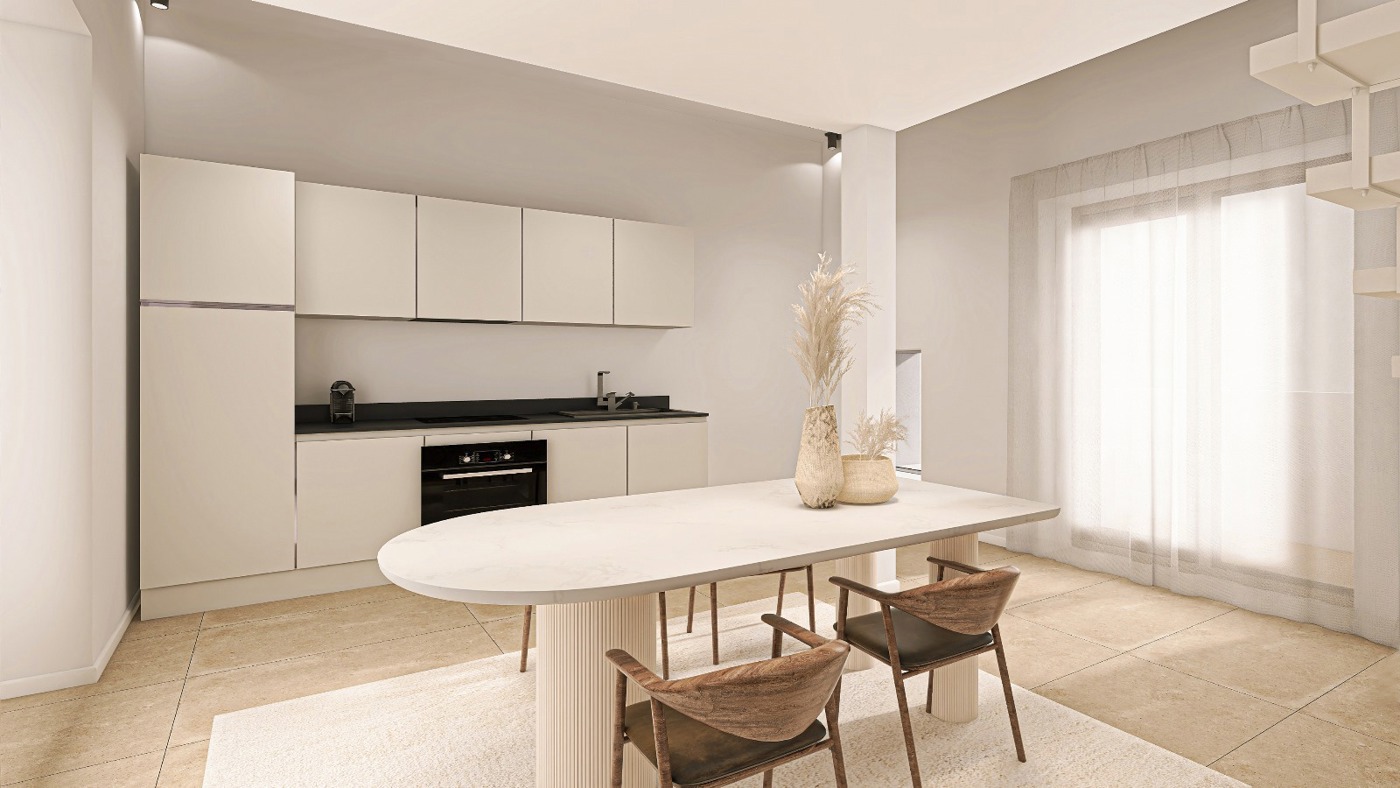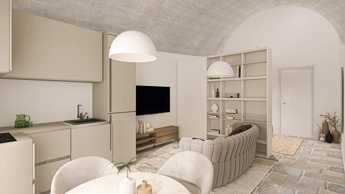 Inoltre, limmobile sar caratterizzato da ottime rifiniture, quali infissi in doppio vetro, tapparelle motorizzate, pavimento in chianche pugliesi, porta blindata e impianto di raffrescamento e riscaldamento a pompe di calore.