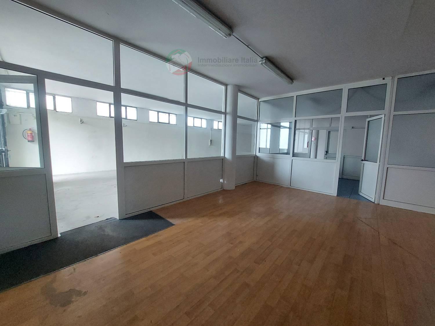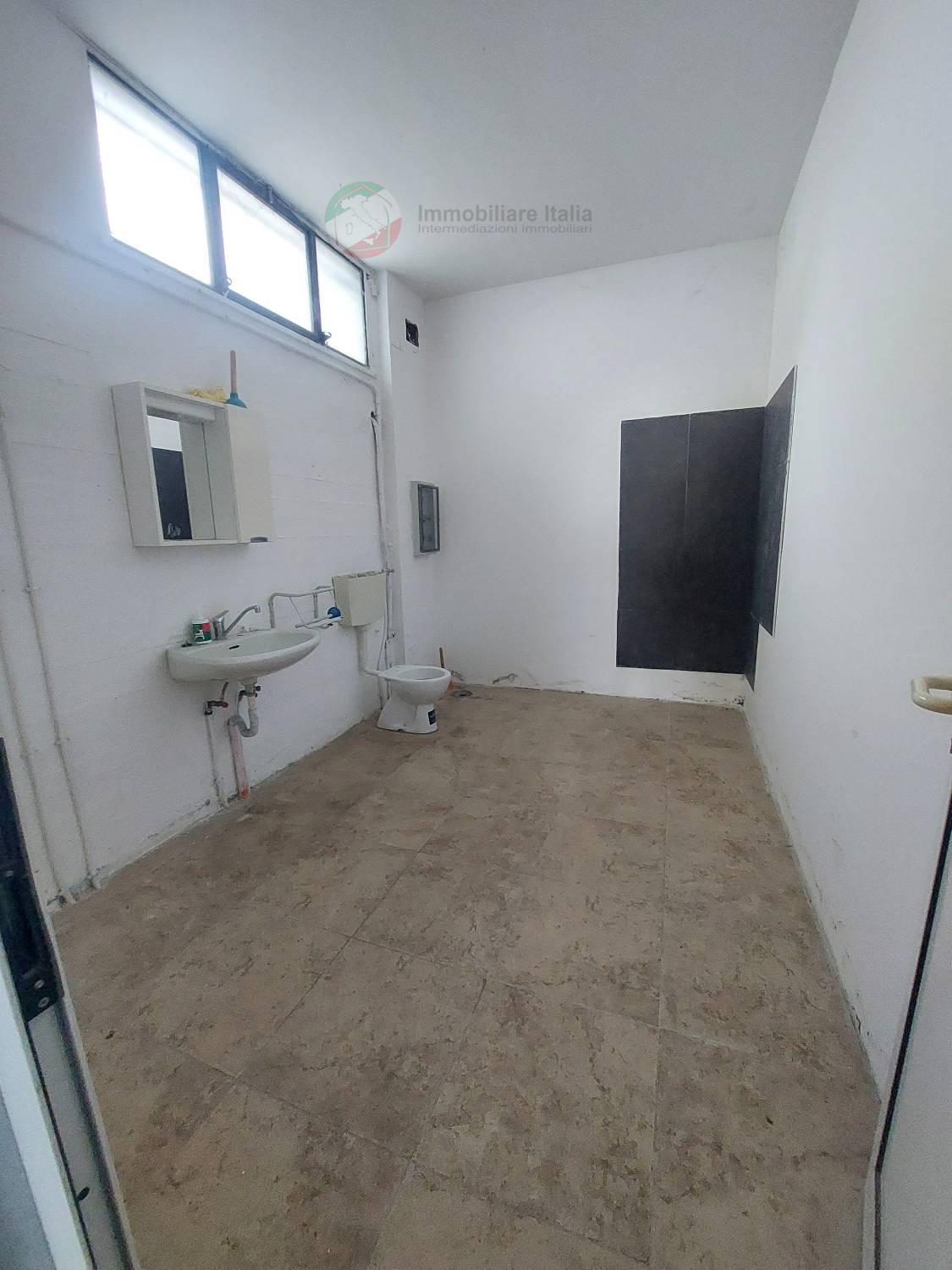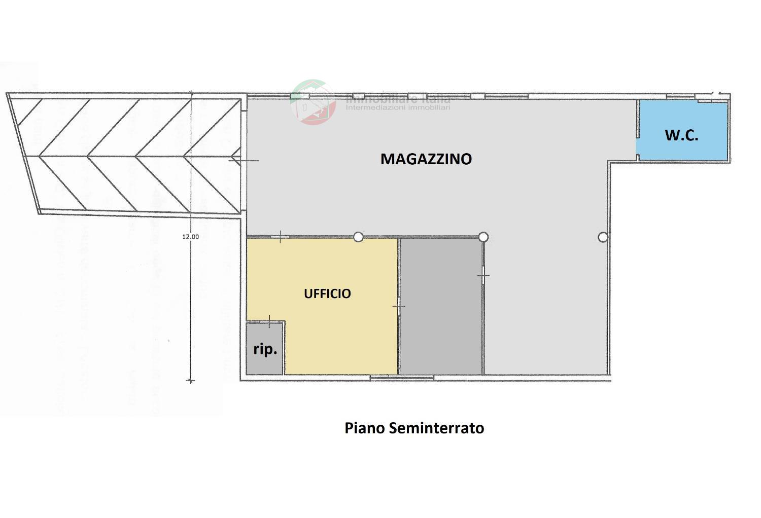 Il locale sviluppa circa 180 mq h=3.00m ; con 1 bagno e un locale piastrellato ad uso ufficio.