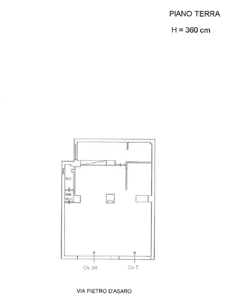 Via Pietro d'Asaro - Magazzino piano terra commerciale C/1 di mq 91 c.a., 2 luci, pavimenti in parquet, wc con antibagno.