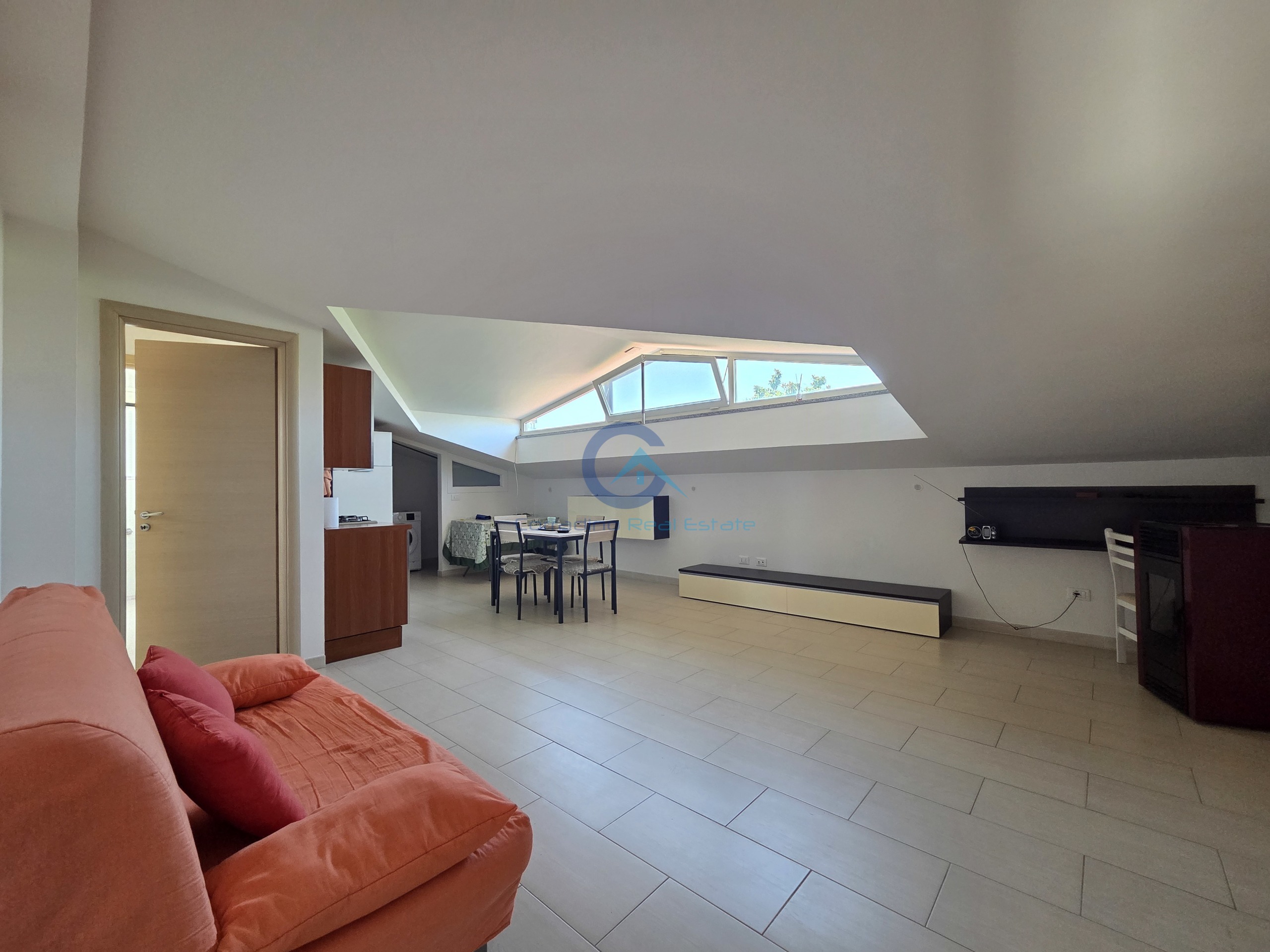 A Catanzaro Lido in località Giovino, zona residenziale e ben servita, appartamento mansardato di nuova costruzione, finemente arredato e completo di elettrodomestici, posto al primo piano con ingresso indipendente, composto da: ingresso living su soggiorno con angolo cottura, bagno con cabina doccia, lavanderia, due ampie camere, ripostiglio e un balcone.