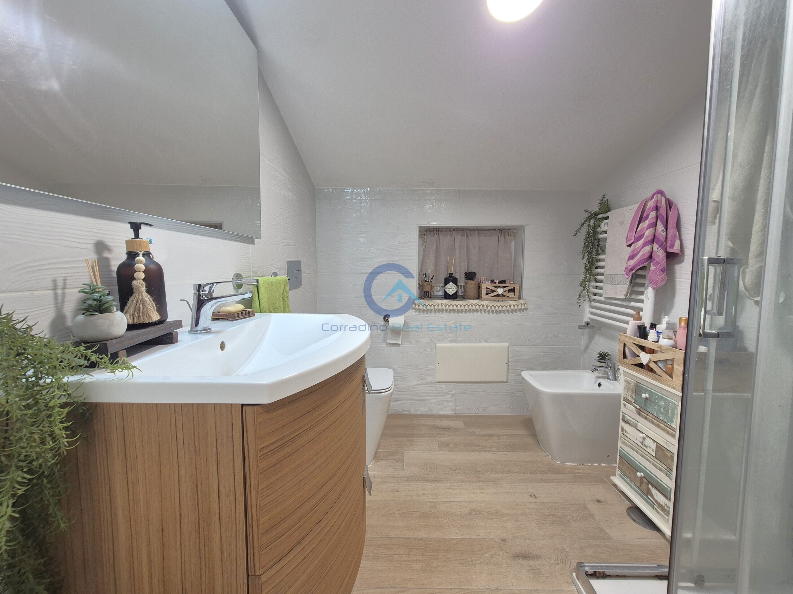 A Catanzaro Lido su viale Crotone, nelle immediate vicinanze della Chiesa Sacro Cuore, attico mansardato e arredato a nuovo posto al secondo e ultimo piano in piccola palazzina privata, composto da: ingresso su soggiorno living con angolo cottura, due camere da letto, bagno con box doccia, due terrazzi e posto auto in corte condominiale.