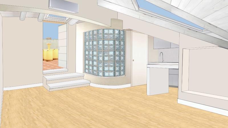 Attualmente ancora accatastata C/2. Raggiungibile con ascensore fino al quinto piano, poi ancora un piano da salire, ma l'ampia terrazza in parte fruibile, ci ricompenserà dello sforzo.