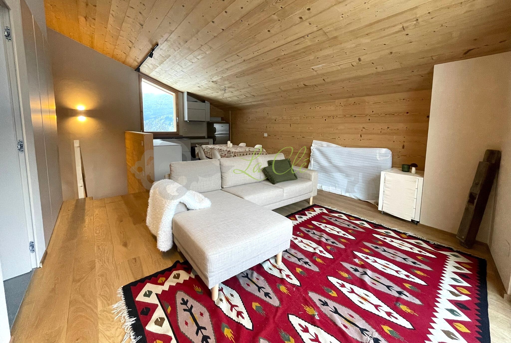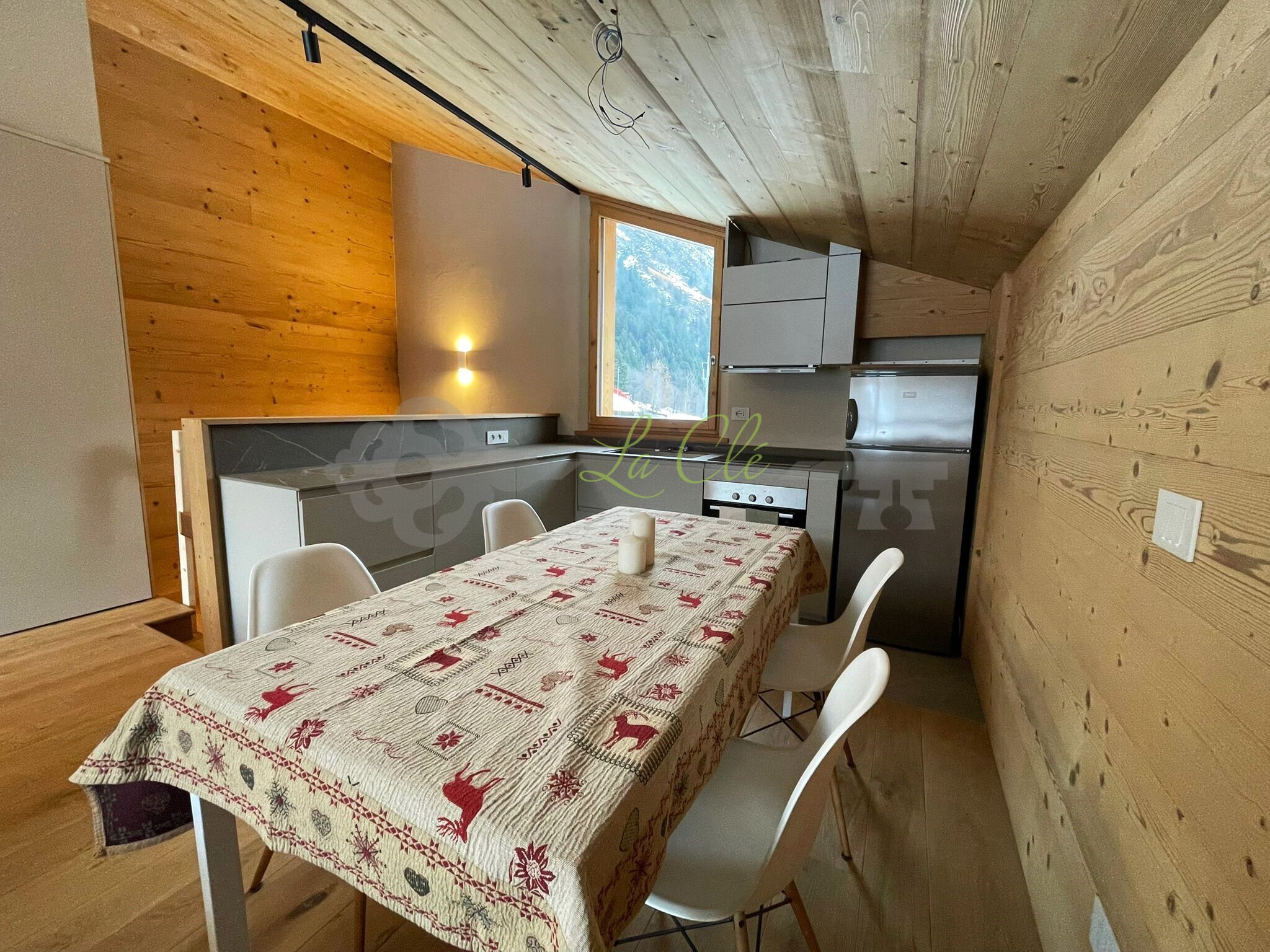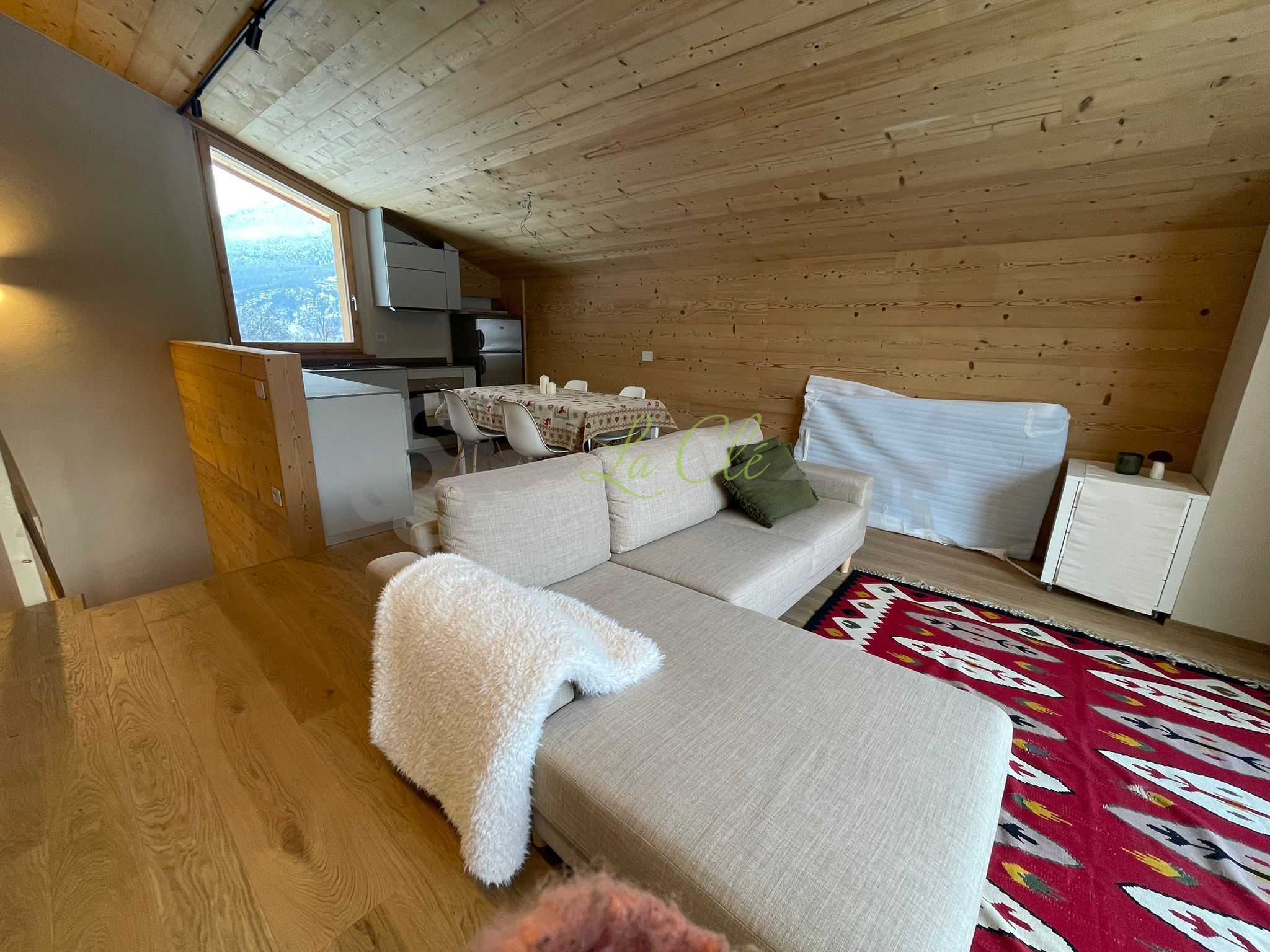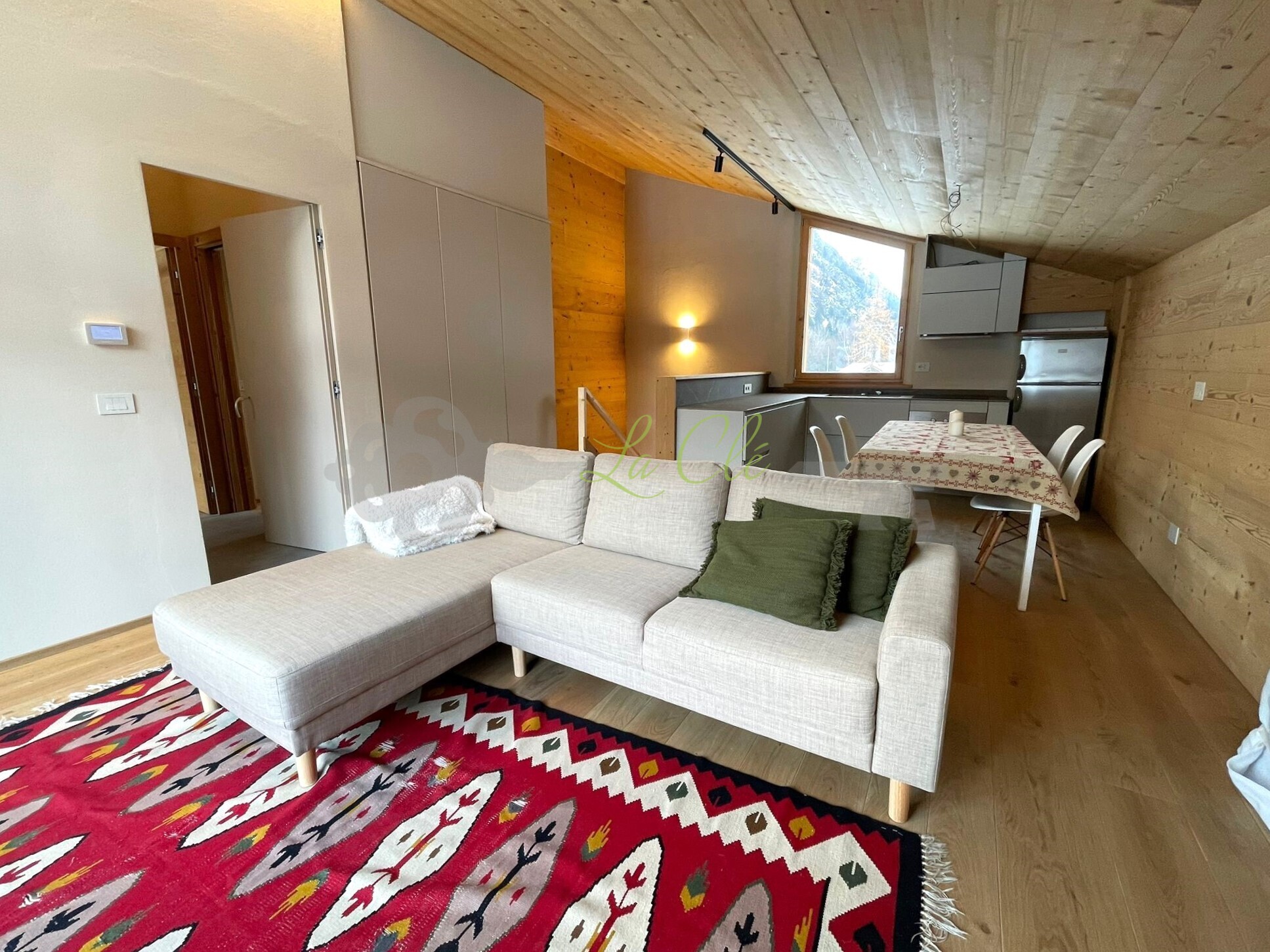 PRE-SAINT-DIDIER, VERRAND - PORZIONE DI CHALET CON VISTA SUL MONTE BIANCO La Clé Immobiliare e Servizi propone in AFFITTO splendida mansarda così composta: ingresso su un ampio e luminoso soggiorno con zona pranzo e cucina a vista accessoriata, impreziositi da grandi vetrate che offrono una splendida vista sul Bianco.