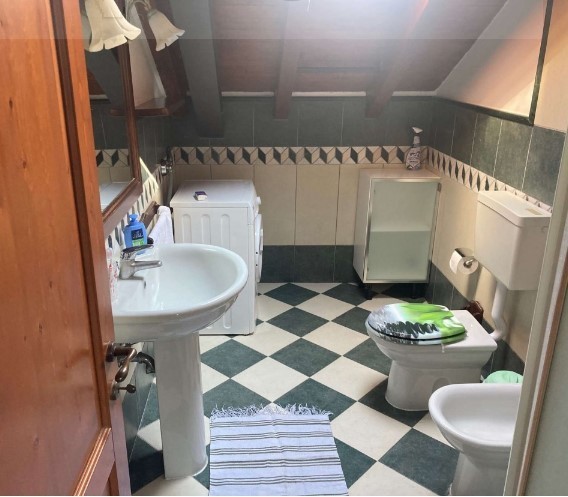 Proprietà di appartamento al piano primo (e ultimo) di un fabbricato condominiale e un box auto al piano seminterrato, siti in zona residenziale.L'abitazione si presenta mansardata ed è composta da un ampio locale a uso soggiorno con zona notte, cucina abitabile con balcone, un servizio igienico e un ripostiglio con accesso dal pianerottolo condominiale.