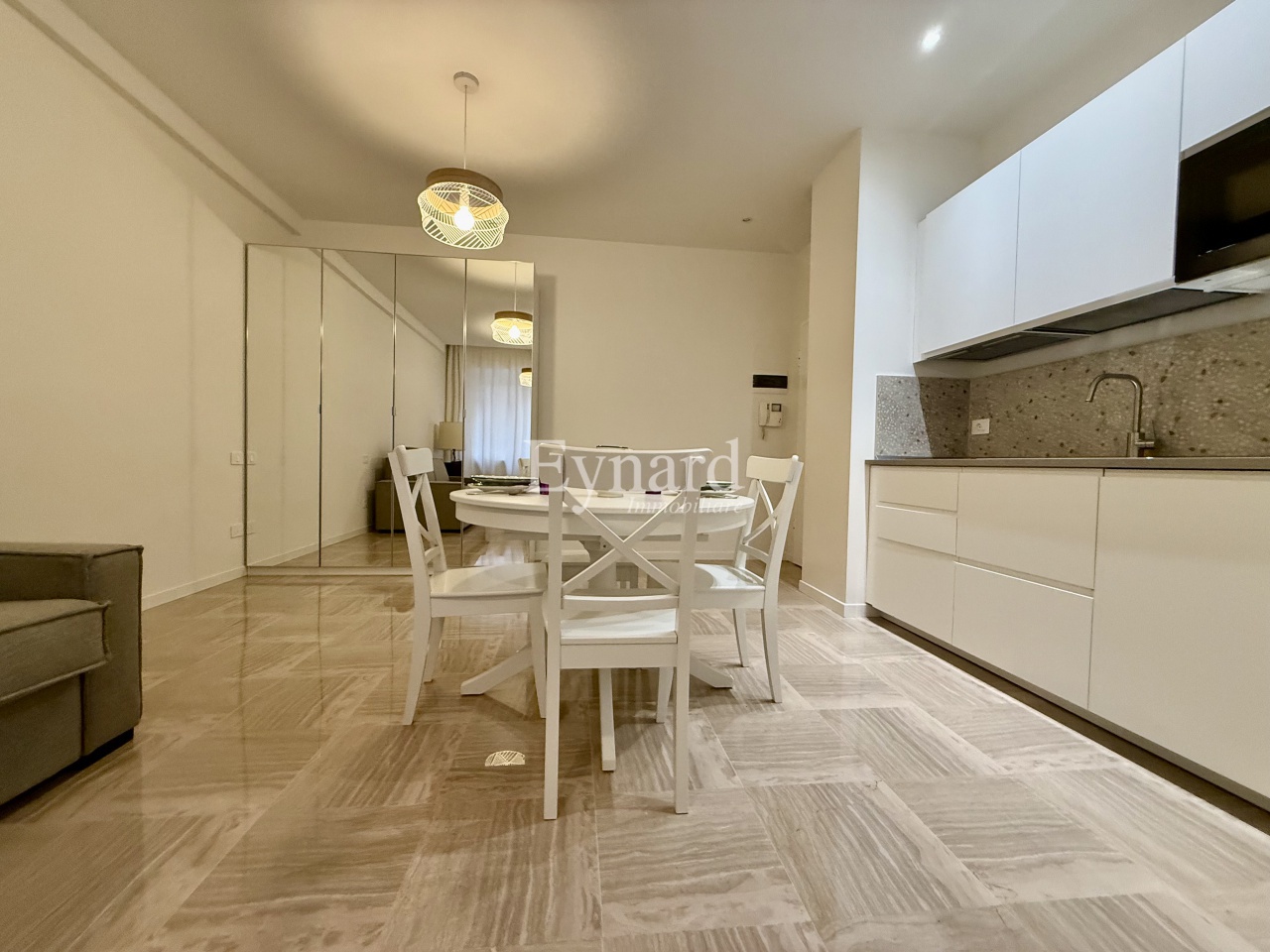 A974 Bergamo centro, zona Poste centrali, monolocale ristrutturato e completamente arredato a nuovo, e così disposto: ingresso, soggiorno con parete cottura, disimpegno, bagno con doccia.