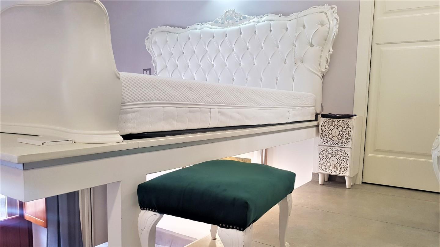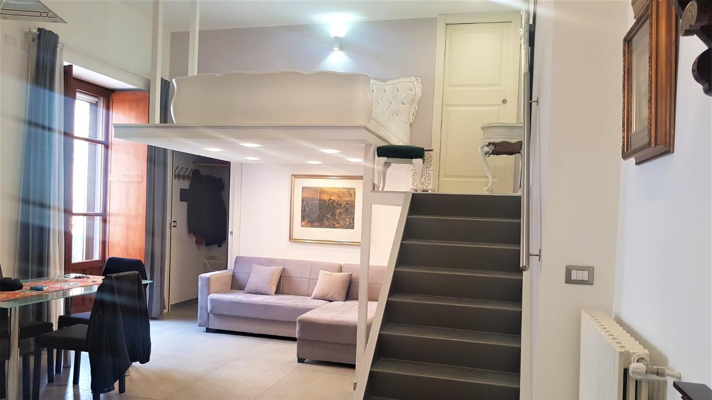 Loft, dunque ambiente UNICO, composto da ingresso su disimpegno, a seguire ampio soggiorno-cucina, letto matrimoniale in soppalco, due bagni, di cui uno adiacente la camera da letto e cabina armadio.