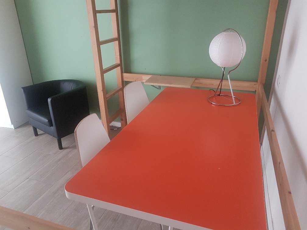 Zona giorno con angolo cottura completo di pensili ed elettrodomestici e divano; zona notte con letto a soppalco per avere ulteriore spazio da sfruttare.