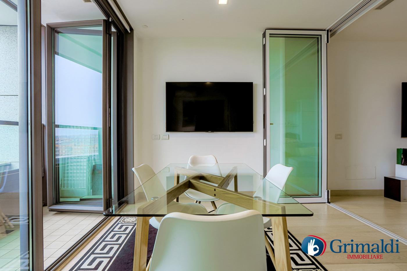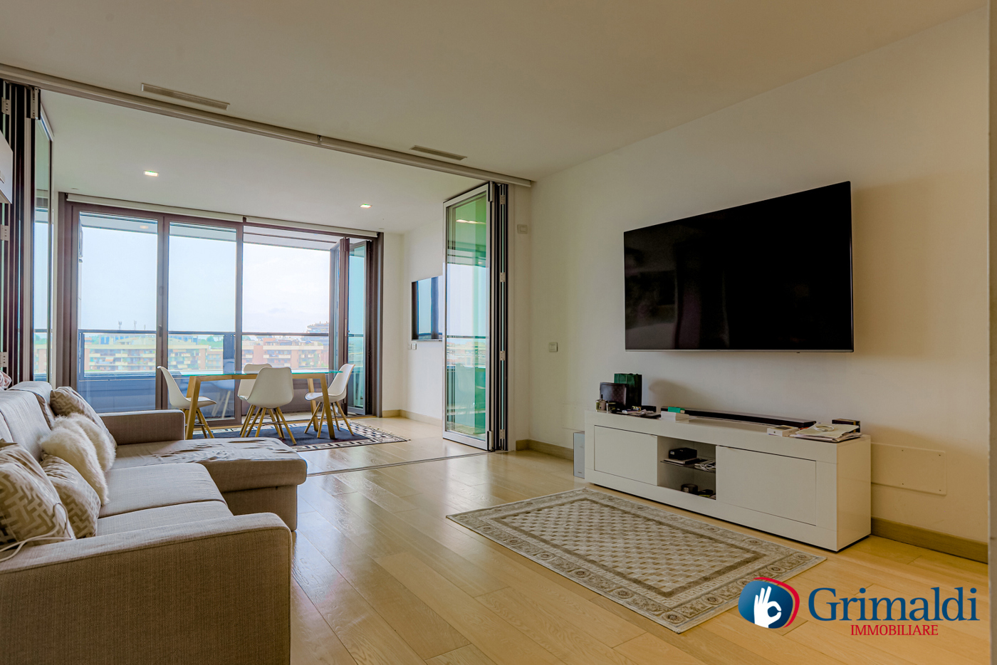 L'appartamento situato al 7° piano con vista libera ed esposizione ad ovest, con spettacolare tramonto, e dotato di climatizzazione inverter autonoma.
