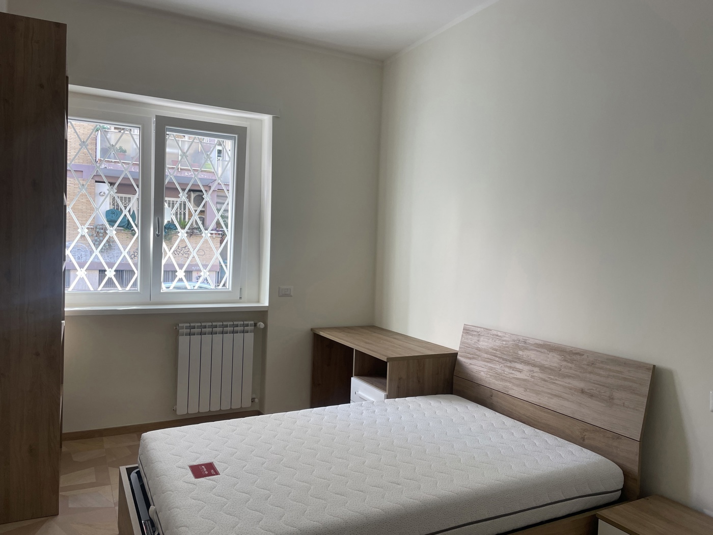 La camera oggetto della locazione di circa 12 mq, arredata con letto ad una piazza e mezzo contenitore, armadio, libreria, scrivania e condizionatore caldo/freddo.