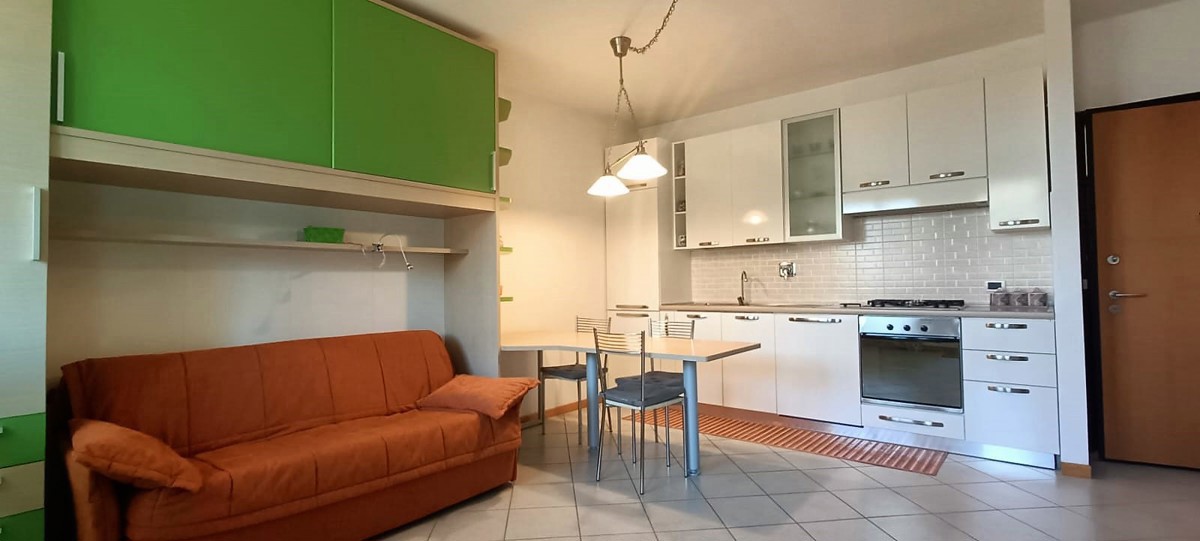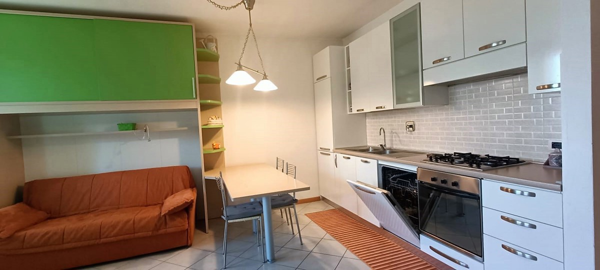 La zona giorno dotata di un pratico divano letto di buona fattura, una scrivania e armadiature, la cucina dotata di tutti gli elettrodomenstici, lavastoviglie compresa, ed pari al nuovo.