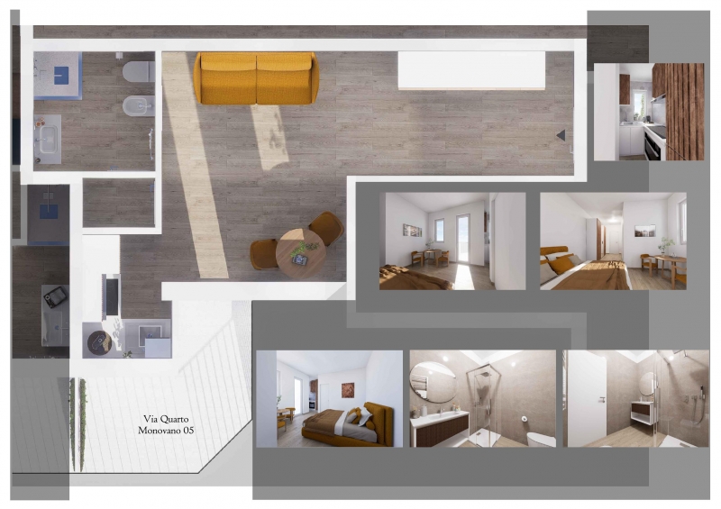 I monovani, attualmente in fase di ristrutturazione, composti da una camere, angolo cottura moderno e un bagno elegante.