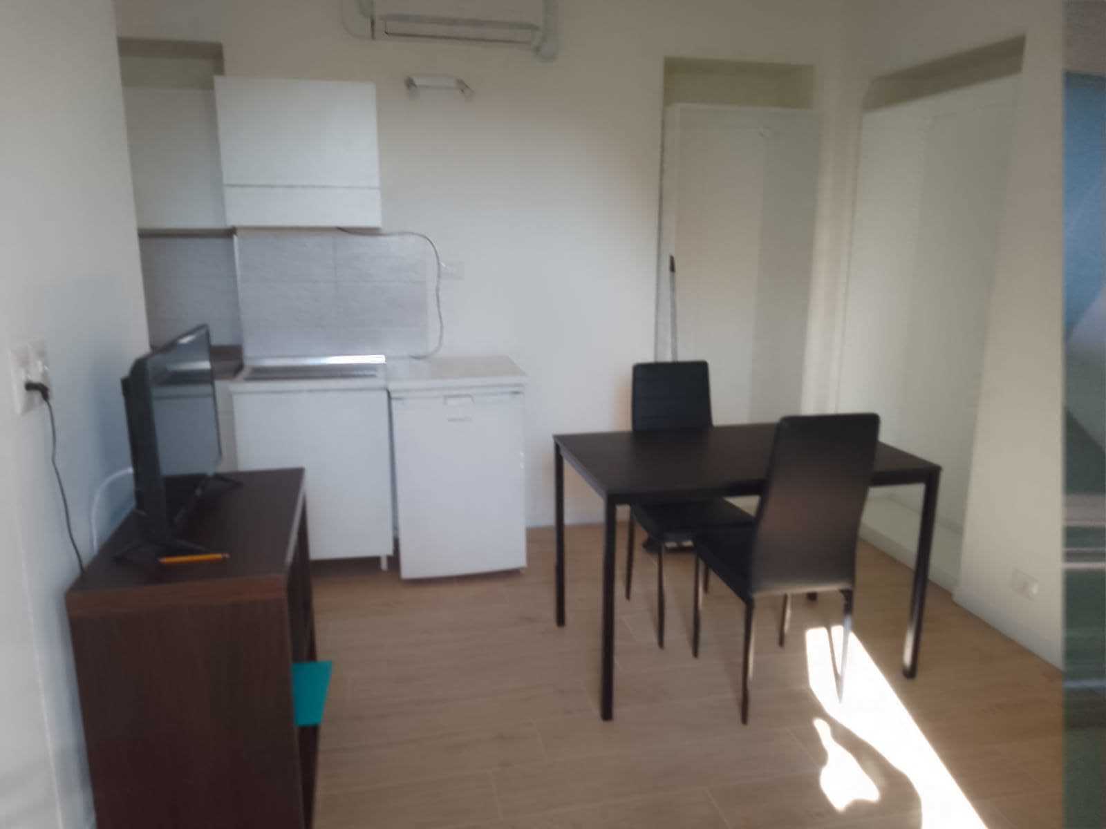 l'appartamento e' cosi' composto: ingresso living su zona giorno con parete cucina a vista , zona notte con letto e servizio con box doccia.