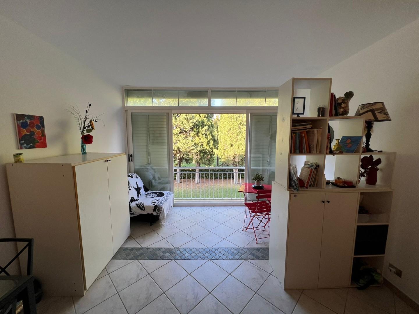 E' situato in uno splendido residence immerso nel verde con la possibilità di usufruire di piscina condominiale.