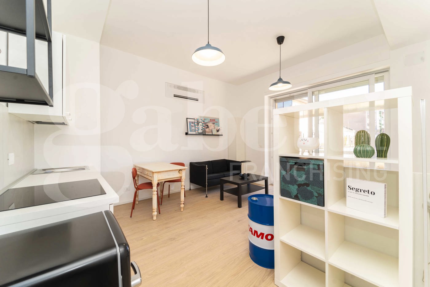 L'appartamento composto dall'ingresso, il bagno con doccia, un ripostiglio con attacchi lavatrice, ideale per creare una zona lavanderia e cabina armadi, e una luminosa stanza ad uso camere da letto e soggiorno con angolo cottura, perfetto per godersi momenti di relax e convivialit.