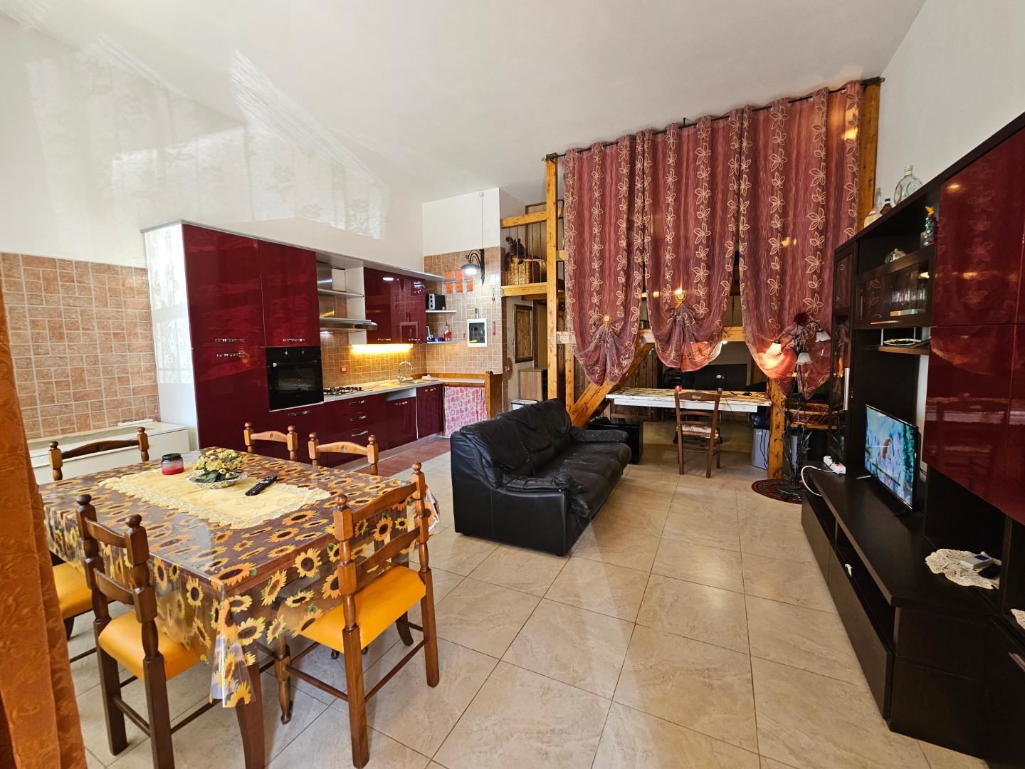 ***.*******.** A691A - Appartamento, loft, recentemente ristrutturato a nuovo, facente parte di piu' ampio fabbricato, disposto interamente al piano terra con ingresso indipendente composto da unico grande vano con lato cottura, zona living, zona studio, soppalco con letto matrimoniale, bagno con doccia.