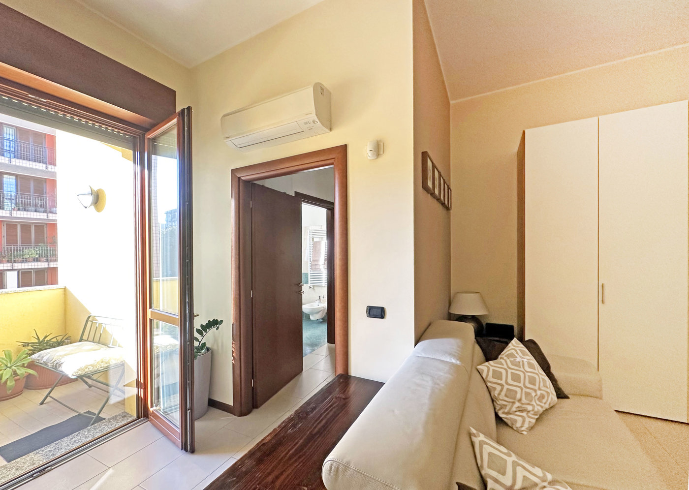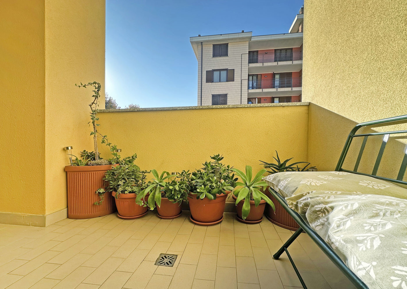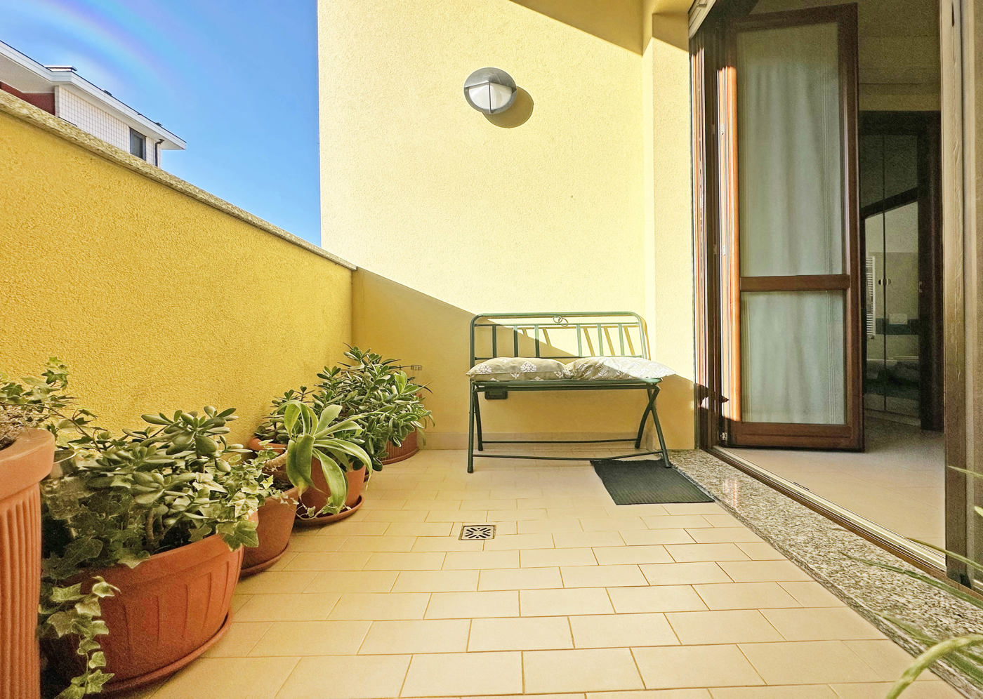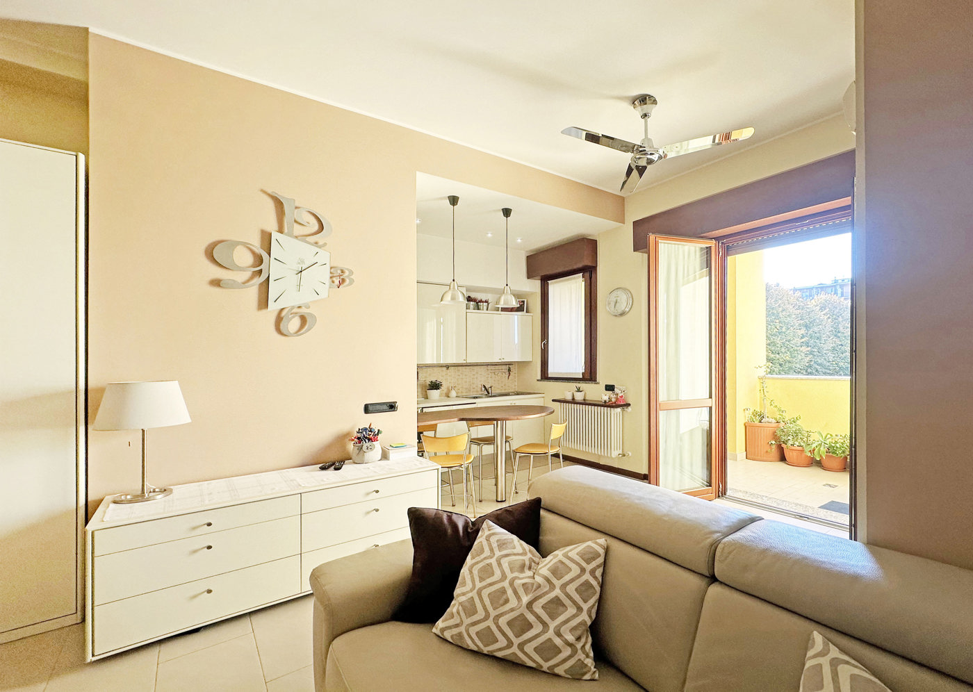 Lingresso si apre su un soggiorno arioso e luminoso, un ambiente che conquista subito grazie alla sua generosit e al diretto collegamento con il terrazzino privato: uno spazio intimo e riservato, ideale per godere di momenti di relax allaperto o per arricchire la quotidianit con la luce naturale che inonda la casa. La cucina a vista, sapientemente collocata in modo da risultare funzionale ma riparata, completa la zona giorno con uno stile moderno ed equilibrato, permettendo di vivere lambiente in maniera dinamica senza rinunciare alleleganza.