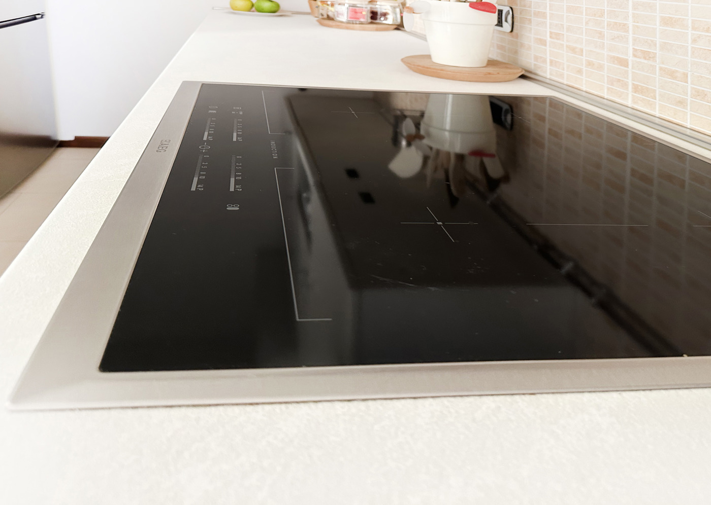 La zona cucina inoltre caratterizzata da un moderno ribassamento con faretti a incasso, soluzione che unisce design estetico e funzionalit.