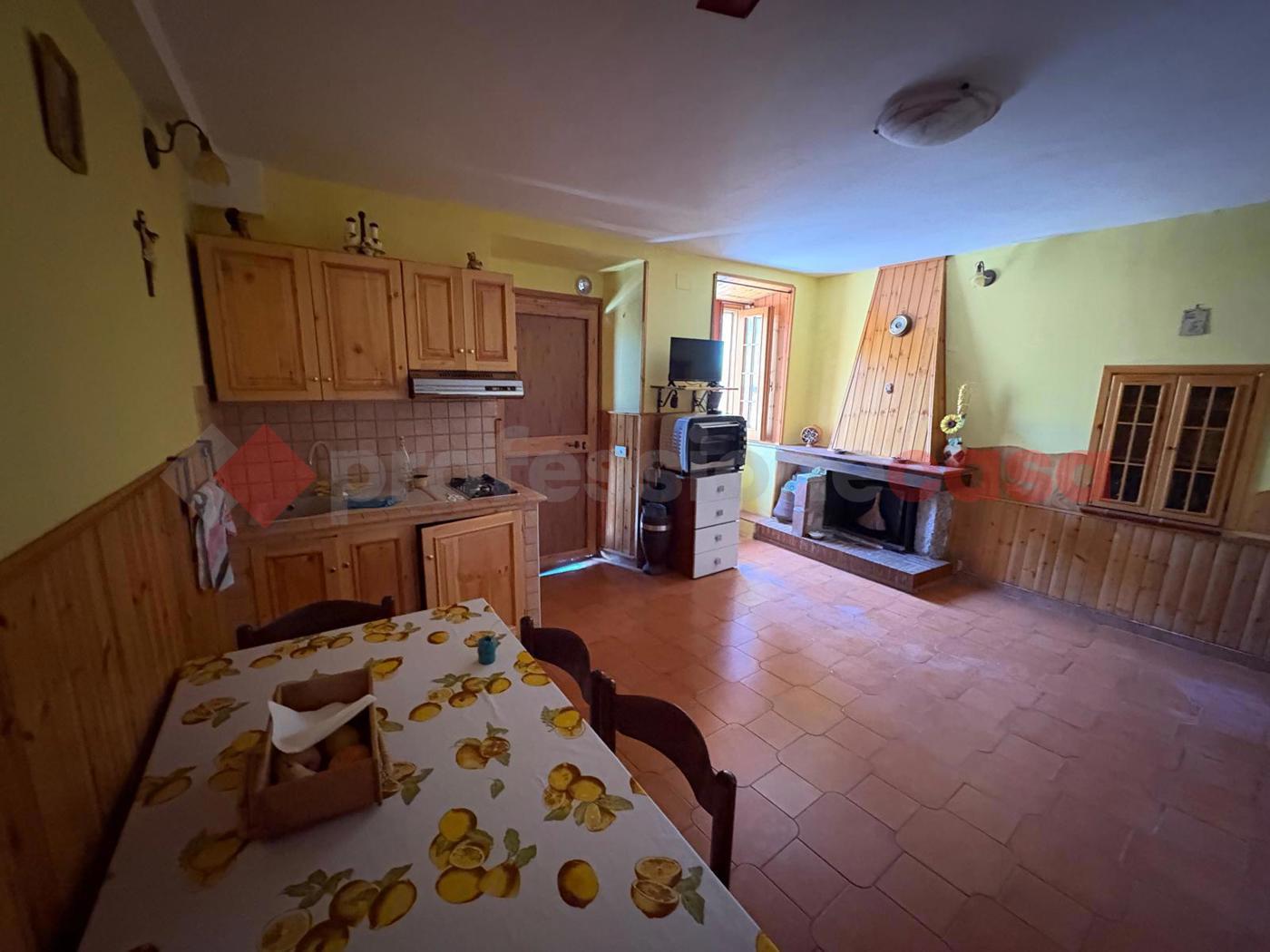 Lingresso accompagna nella cucina, resa particolarmente calda e conviviale dalla presenza del camino, ideale per creare unatmosfera intima e familiare.