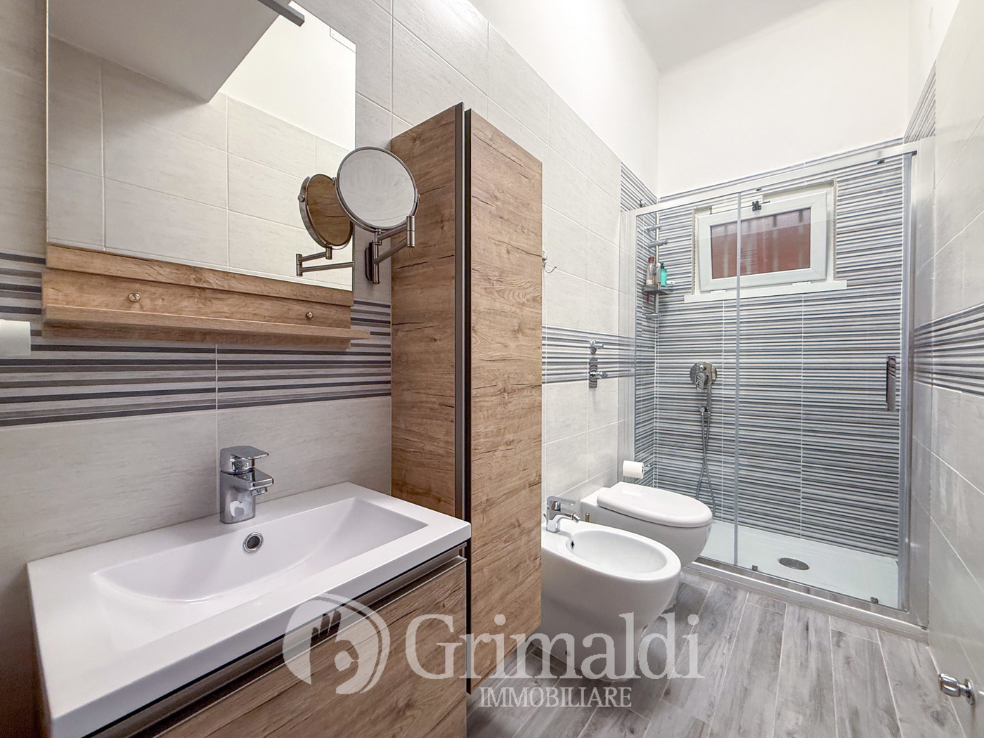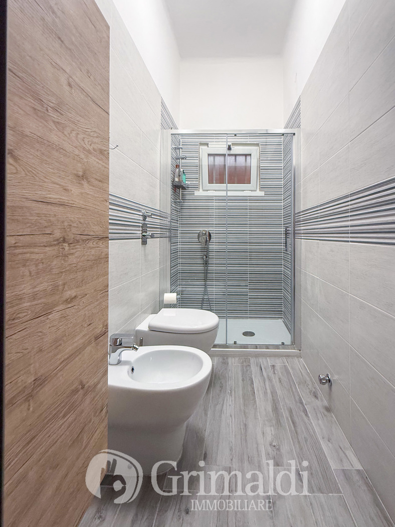 Il bagno finestrato completo di sanitari, lavabo e doccia.