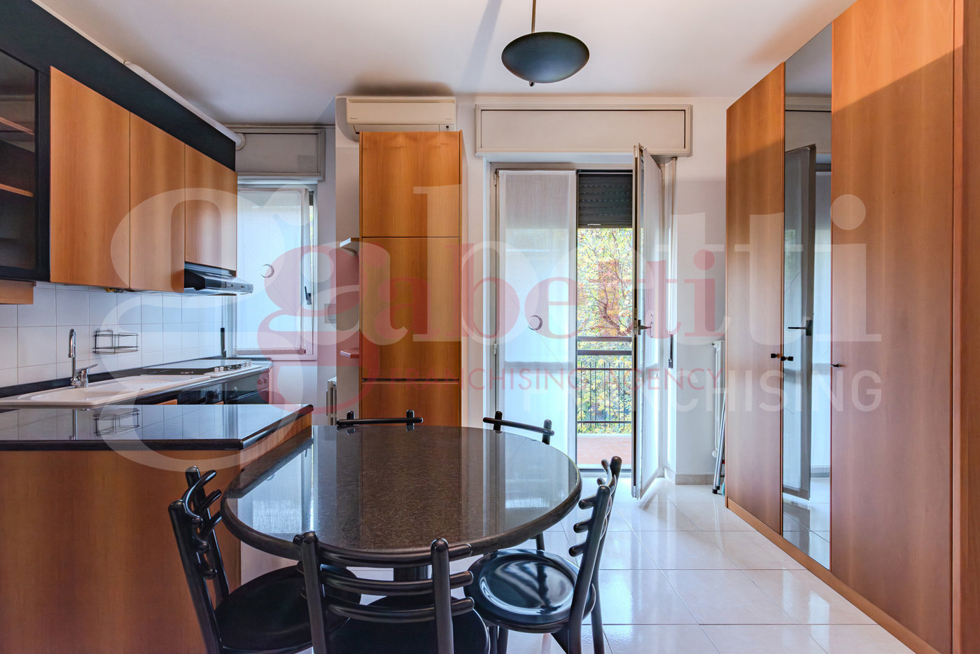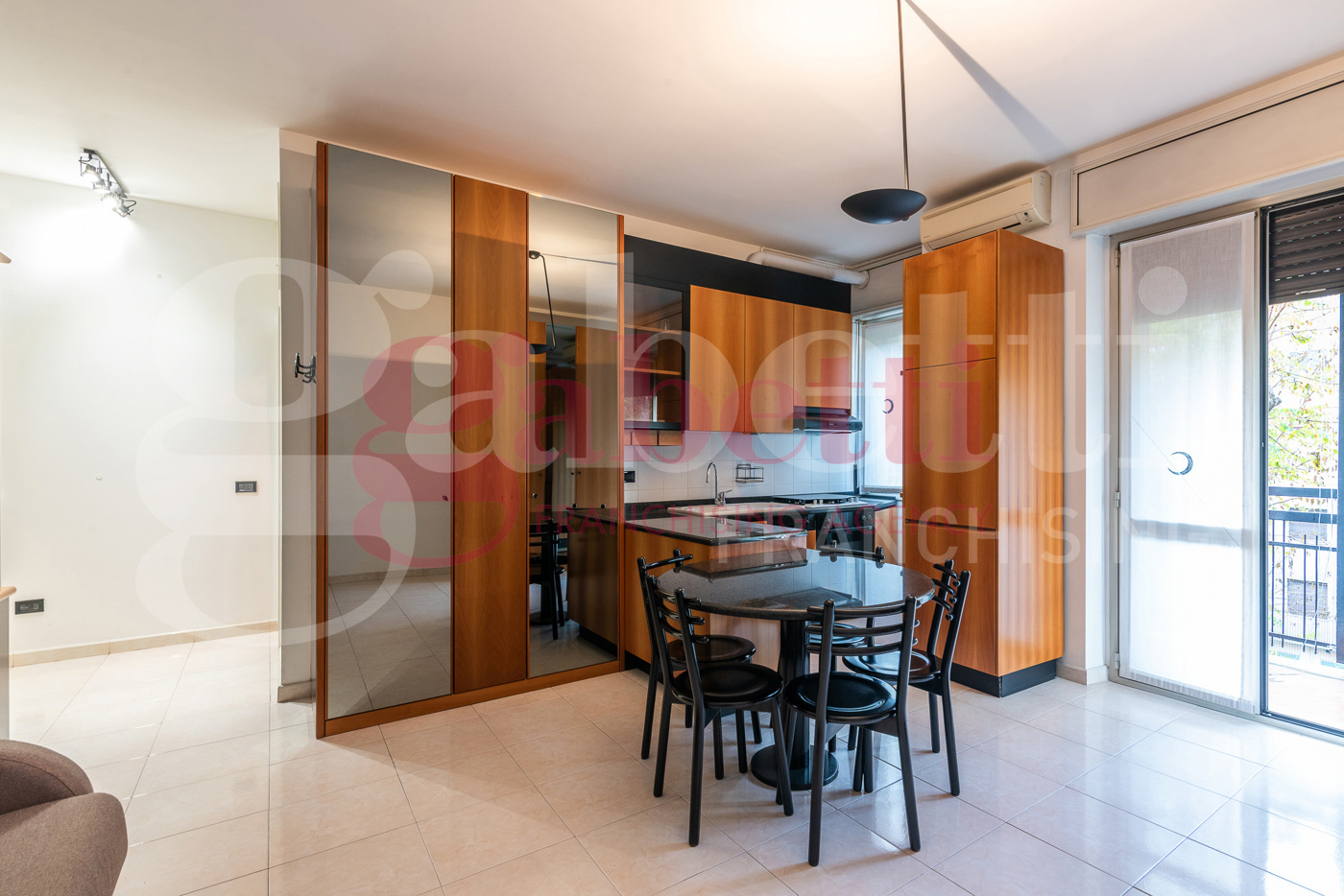Rif. 47/25 Gabetti Santa Rita / Famagosta Via Fra Cristoforo in stabile signorile con ampio e curato giardino condominiale, ascensore e servizio di portineria giornaliero proponiamo ampio monolocale di 45 mq ca. posto al terzo piano e composto da ingresso su ampia zona giorno/notte, dove troviamo una splendida cucina con penisola di granito nero dafrica, dalla medesima zona si accede ad un ampio balcone che affaccia allinterno del condominio, anti bagno e bagno finestrato dotato di finiture di pregio come lavandino in marmo di carrara e piastrelle in rilievo.