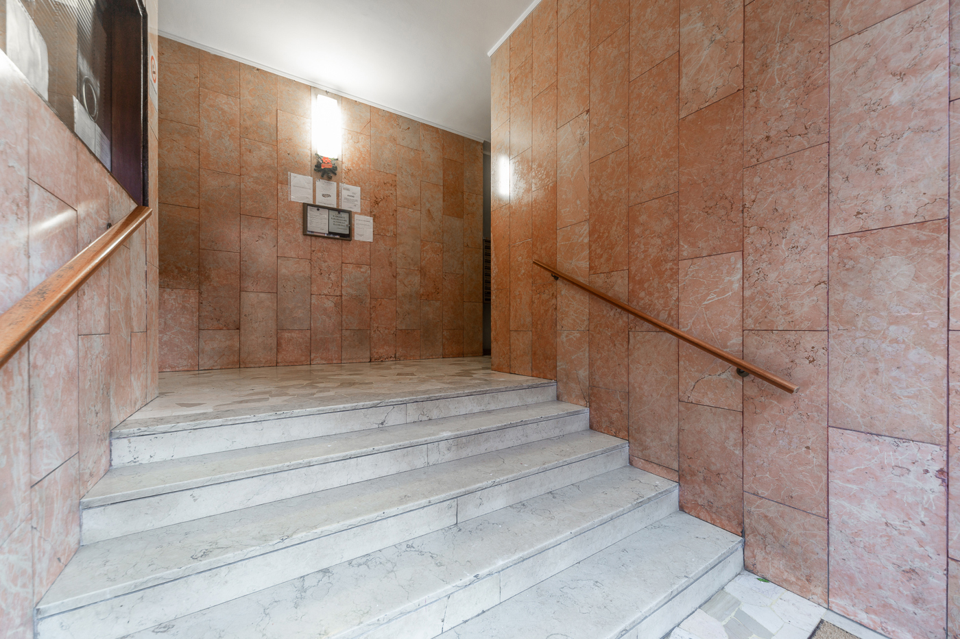 Il condominio in cui ubicato presenta servizio di portineria full-time, ascensore, riscaldamento centralizzato, e di recente stata rifatta la facciata esterna.